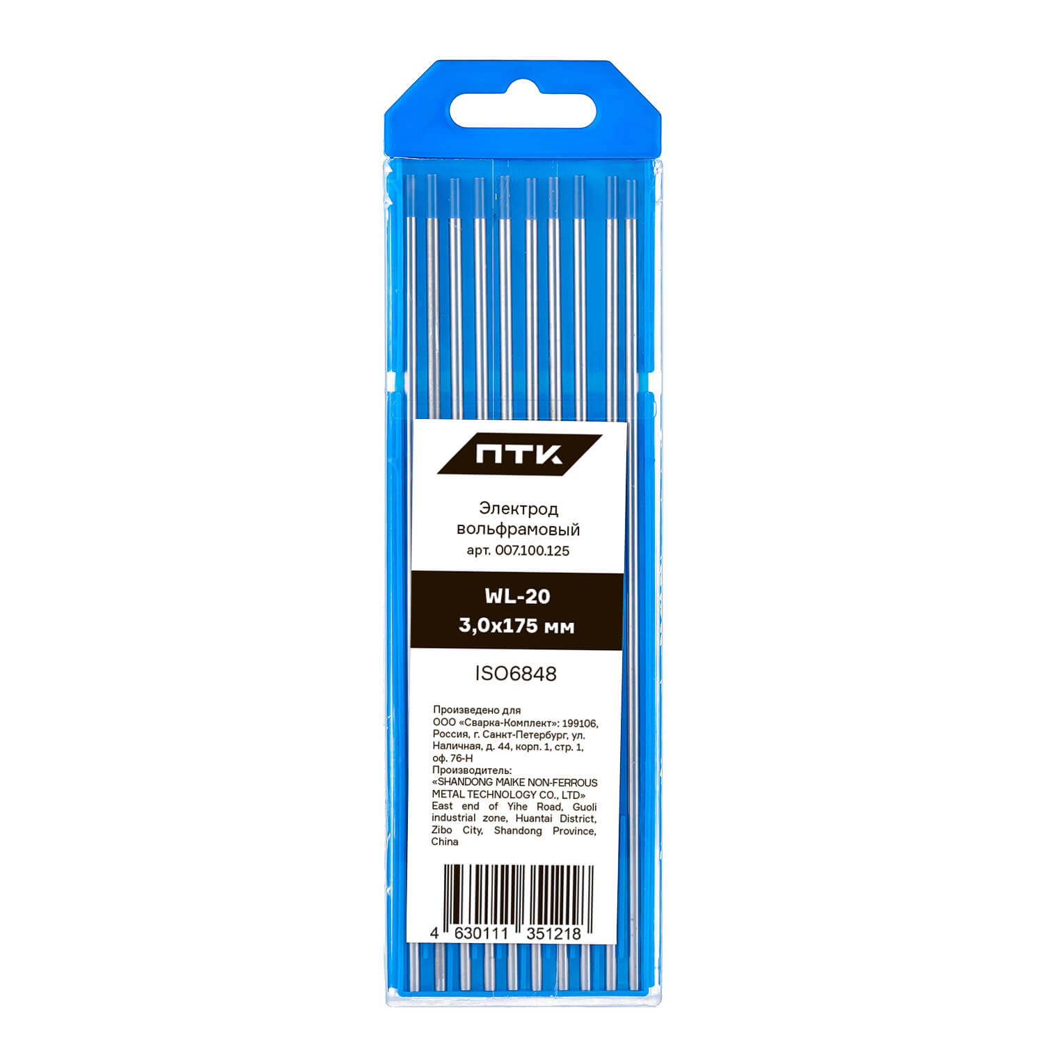 Диаметр электрода 3,0 мм, длина электрода 175 мм. Вольфрам имеет синий цветовой код. Поставляется в пластиковом пенале по 10 штук. В карточке с товаром указана цена за 1 вольфрамовый электрод.