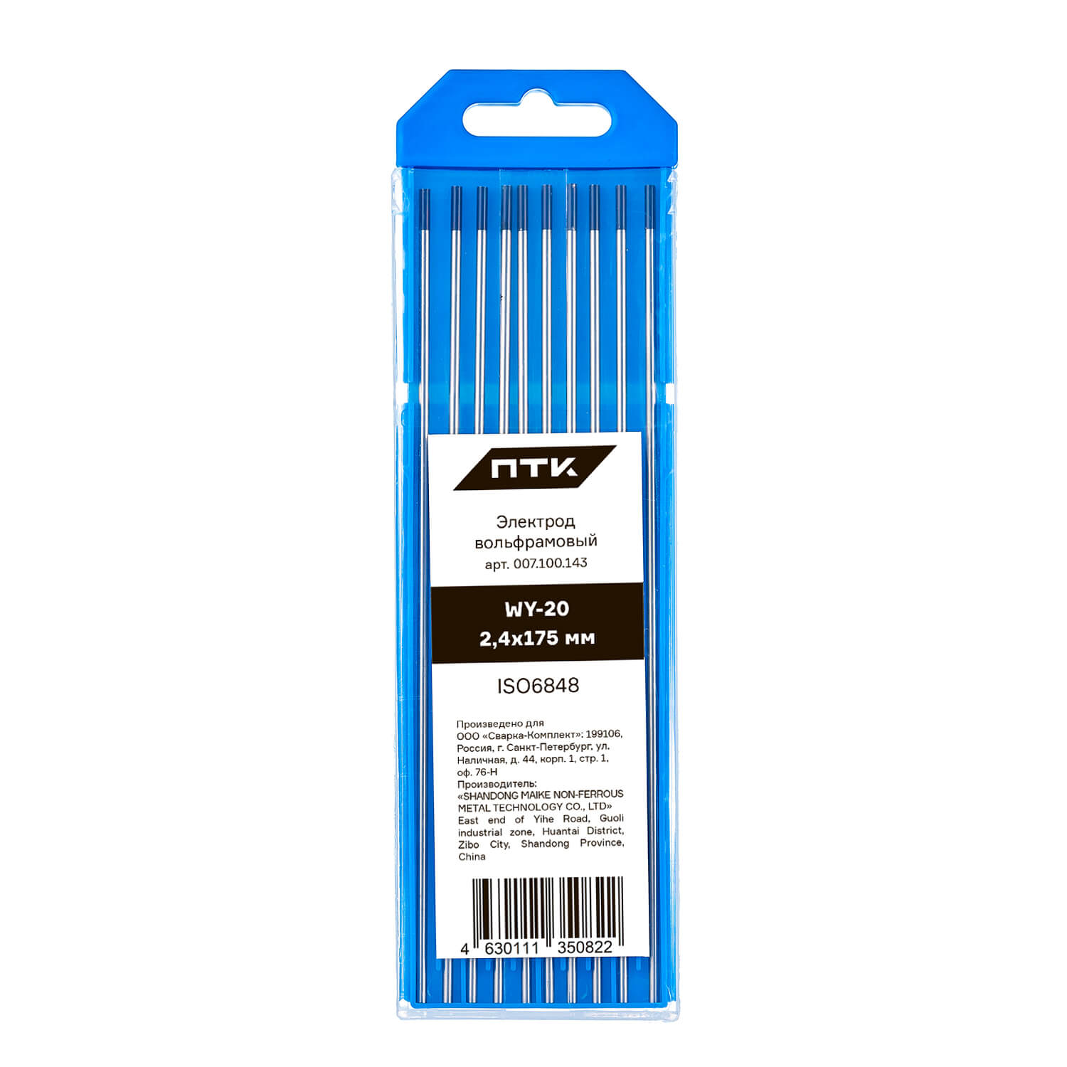 Диаметр электрода 2,4 мм, длина электрода 175 мм. Вольфрам имеет синий цветовой код. Поставляется в пластиковом пенале по 10 штук. В карточке с товаром указана цена за 1 вольфрамовый электрод.