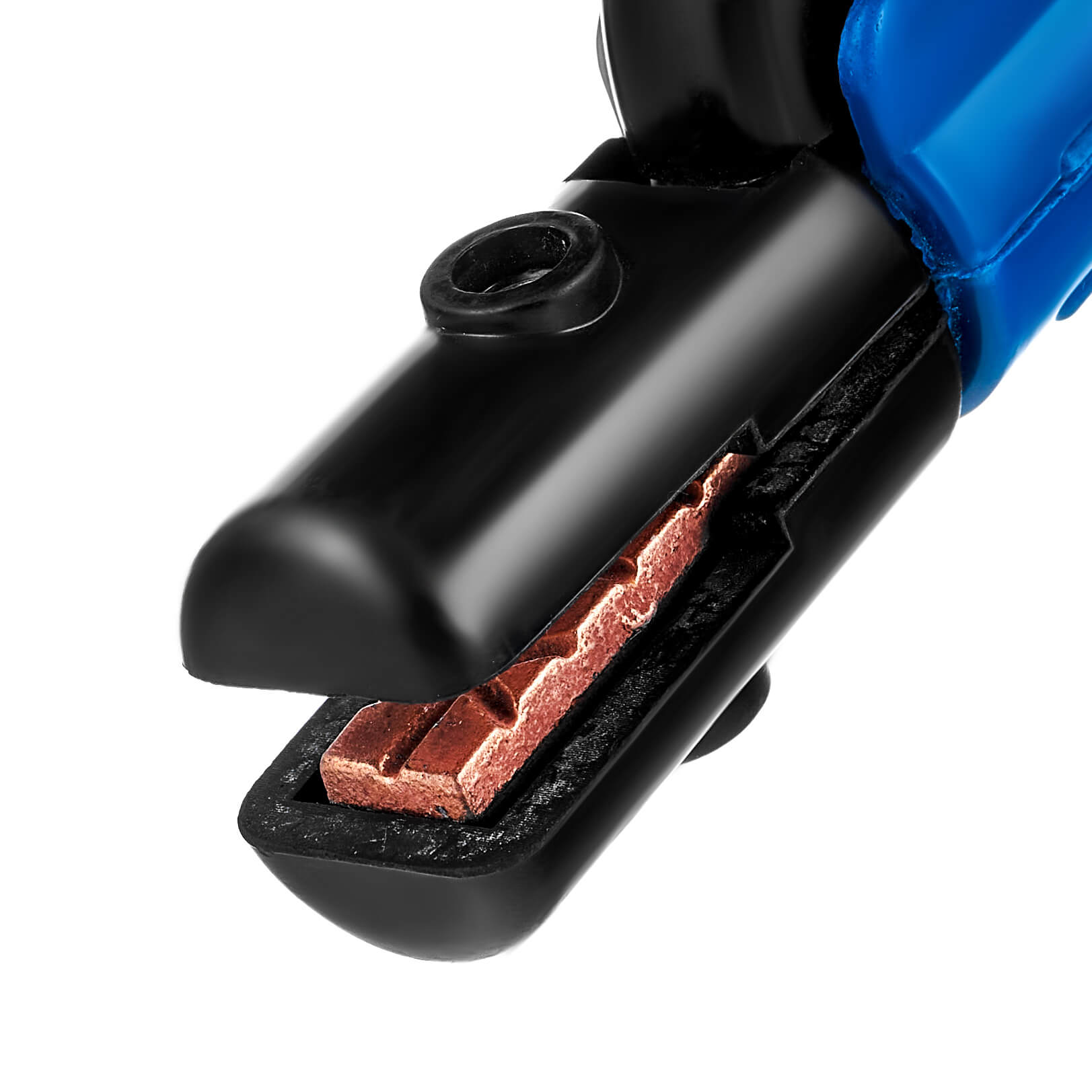 Отличительная особенность электрододержателей серии ЭД 1-S заключается в том, что сварочный кабель наматывается на пластину и зажимается потайной гайкой М12 с внутренним шестигранником.