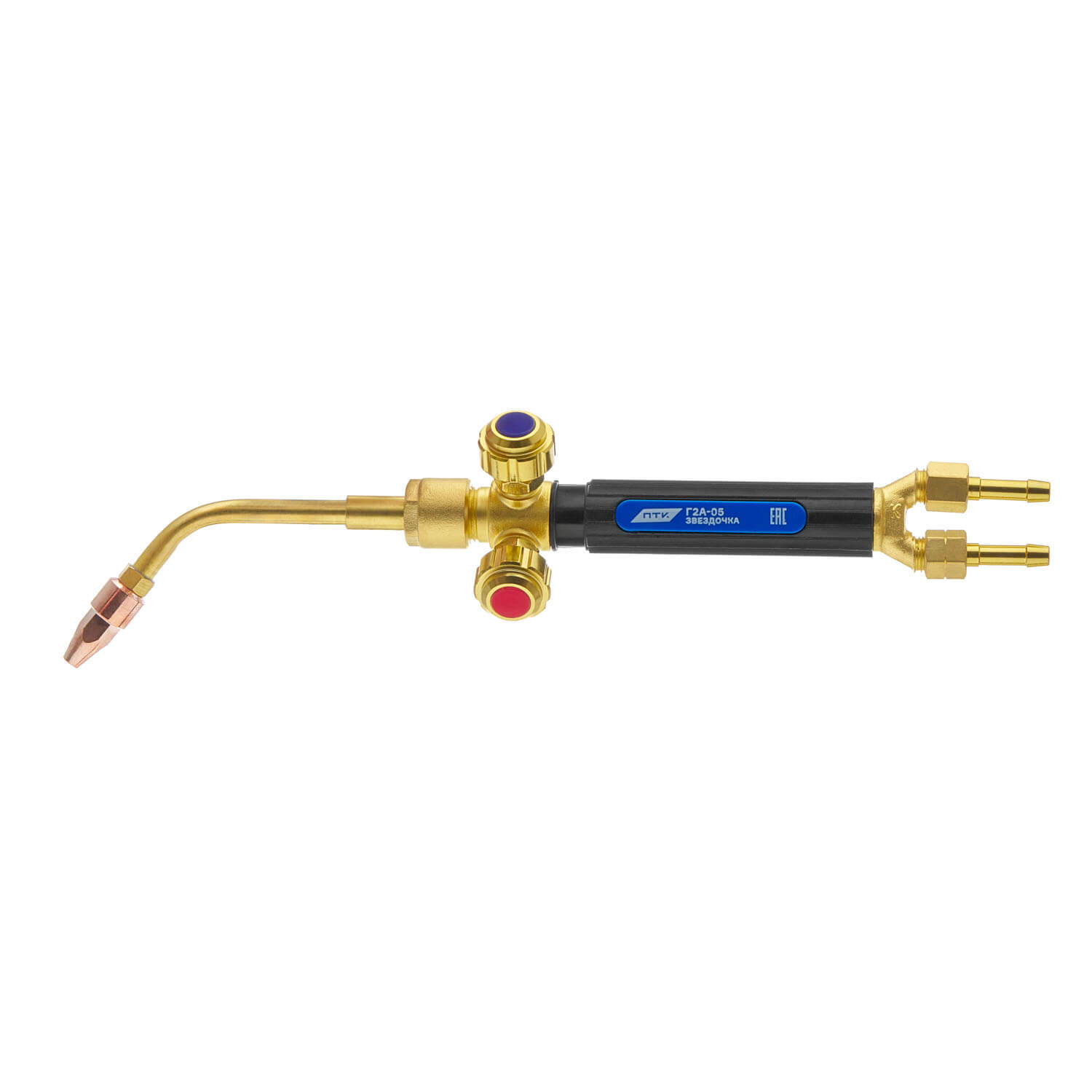 Горелка ацетиленовая Г2А-05 «Звездочка» (№ 0А, 1А, 2А, 3А) используется для сварки, пайки высокотемпературными припоями, нагрева, плавления и прочих видов газопламенной обработки металлов. На горелке установлена ручка из высокотемпературного штампованного пластика, выдерживающая температуру до 200°С, благодаря чему можно работать в тонких рукавицах.
