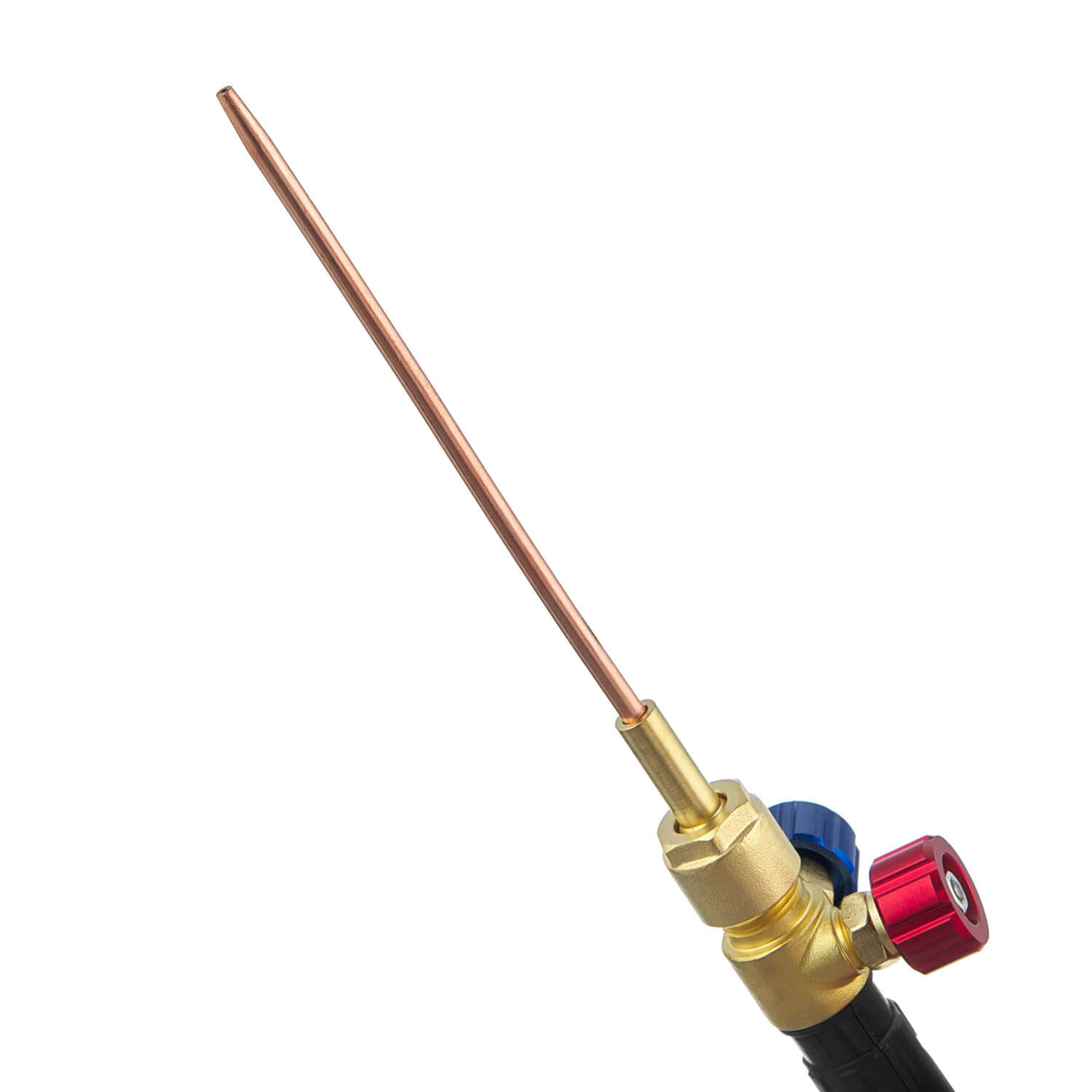 Горелка укомплектована медными цельнотянутыми наконечниками, которые позволяют выполнять работы в ограниченном пространстве и в труднодоступных местах. Отличительная особенность FLEX наконечников – их эластичная структура, которая позволяет газосварщику согнуть носик наконечника или изогнуть сам наконечник.