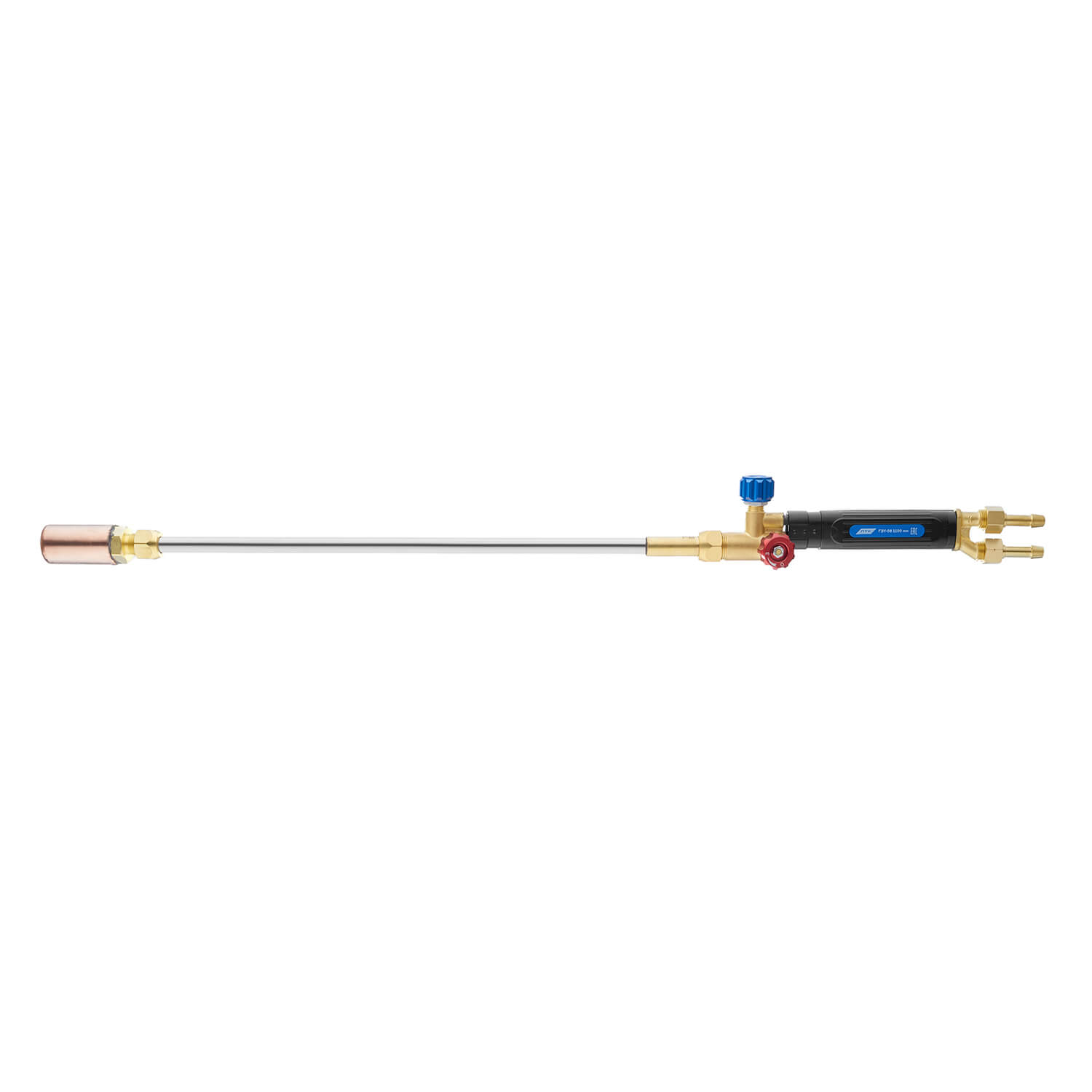 Газокислородная горелка для наплавки и нагрева металла ГЗУ-08 длиной 800 мм используется для предварительного нагрева изделий перед сваркой, наплавления материала с высокой износостойкостью на рабочую поверхность детали для увеличения ее долговечности.