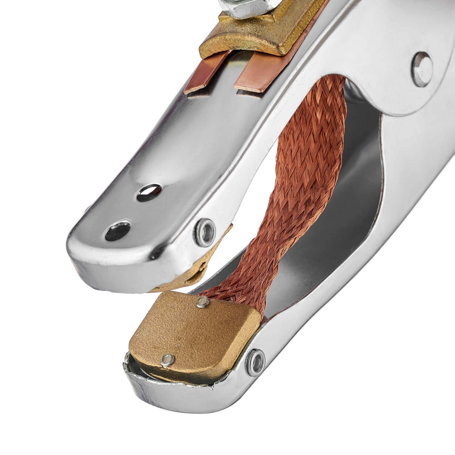Клемма изготовлена из стали. Наличие латунных губок гарантирует улучшенную электропроводность и контакт.