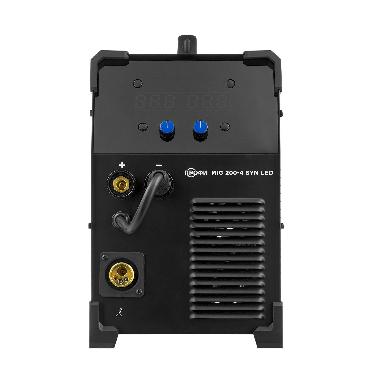 ПРОФИ MIG 200-4 SYN LED – обновлённый аппарат из серии ПРОФИ для полуавтоматической сварки MIG с металлическим 4-х роликовым механизмом подачи проволоки.