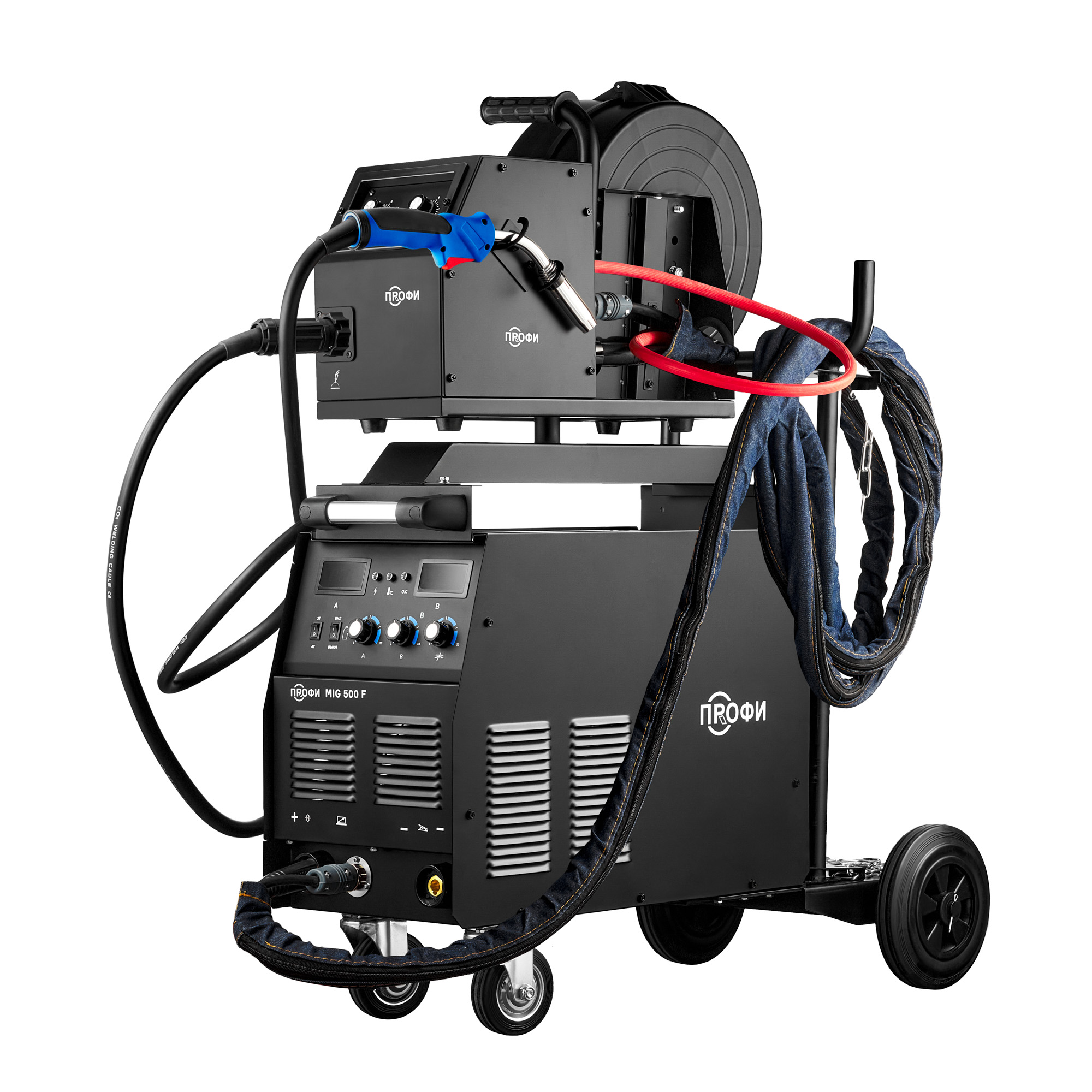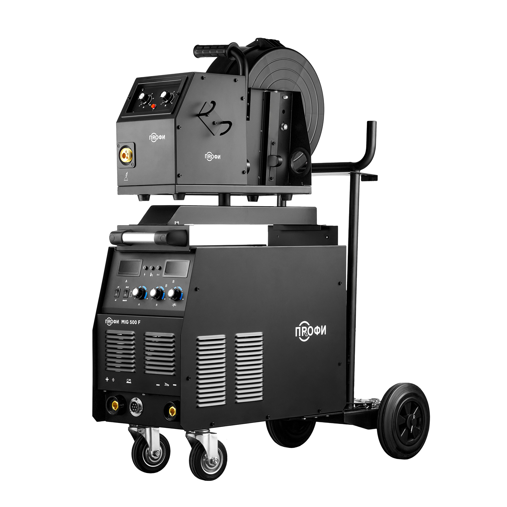 Аппарат ПРОФИ MIG 500 F поставляется в сборе с тележкой-платформой, которая обеспечивает более легкую и комфортную эксплуатацию оборудования. Тележка обладает надежной усиленной конструкцией. На нее можно установить сварочный источник, выносной подающий механизм, блок жидкостного охлаждения и газовый баллон объемом 40 литров.