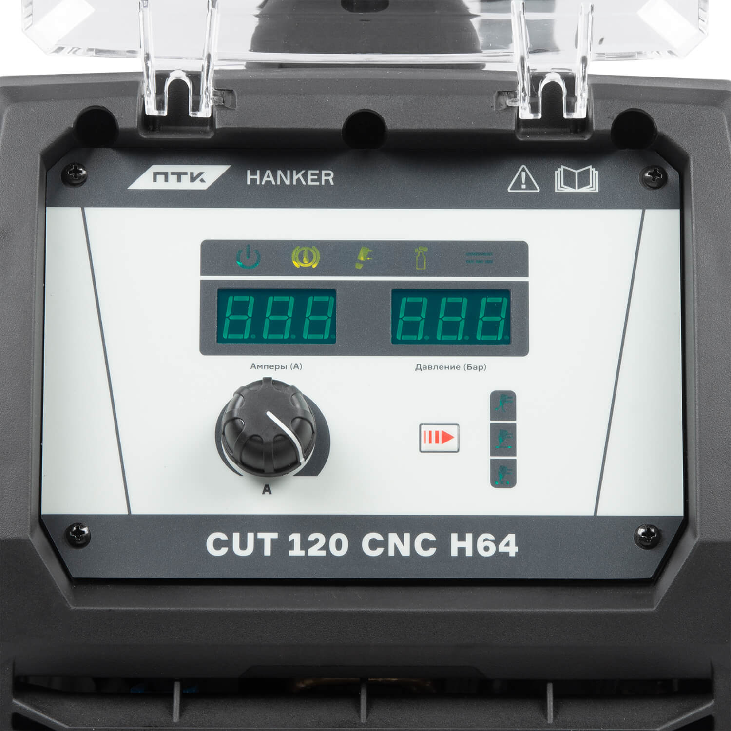 Особенности ПТК HANKER CUT 120 CNC H64:Аппарат с пневматическим поджигом дуги. За счет этого создается минимальное количество электромагнитных помех, обеспечивается более стабильный цикл реза.Максимальная толщина разрезаемого металла до 60 мм.Аппарат можно использовать совместно с ЧПУ.Наличие постпродувки плазматрона воздухом после резки. Функция продлевает срок службы плазменного резака и комплектующих.Возможно переключение режимов работы плазменного резака – 2Т/4Т. Это обеспечивает удобство при выполнении коротких и длинных резов.Наличие индикаторов, которые предупреждают, что резак не подключен или отсутствует подача газа.Функция резки сетки.В аппарате предусмотрена автоматическая защита от перегрева и перегрузки по току.5 лет сервисной гарантии.Комплектация аппарата ПТК HANKER CUT 120 CNC H64:Аппарат воздушно-плазменной резки металлов в сборе с фильтром-регулятором – 1 шт.Резак плазменный IPT 100 с U-образной насадкой – 1 шт.Клемма заземления – 1 шт.Газовый шланг полиуретановый – 1 шт.Сопло – 2 шт.Катод – 2 шт.Ключ универсальный – 1 шт.Руководство по эксплуатации – 1 шт.