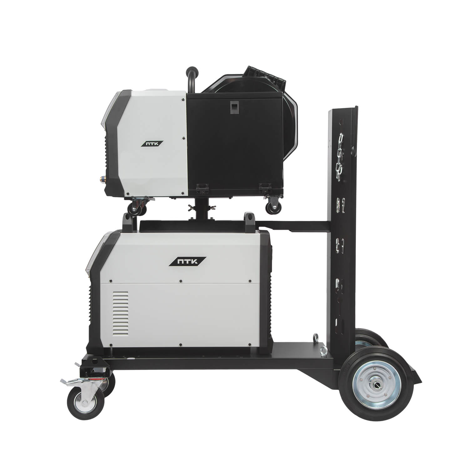 Аппарат поставляется в комплекте с тележкой для перемещения аппарата, подающего механизма и баллона с защитным газом. Тележка обладает надежной усиленной конструкцией, где толщина металла около 3 мм.