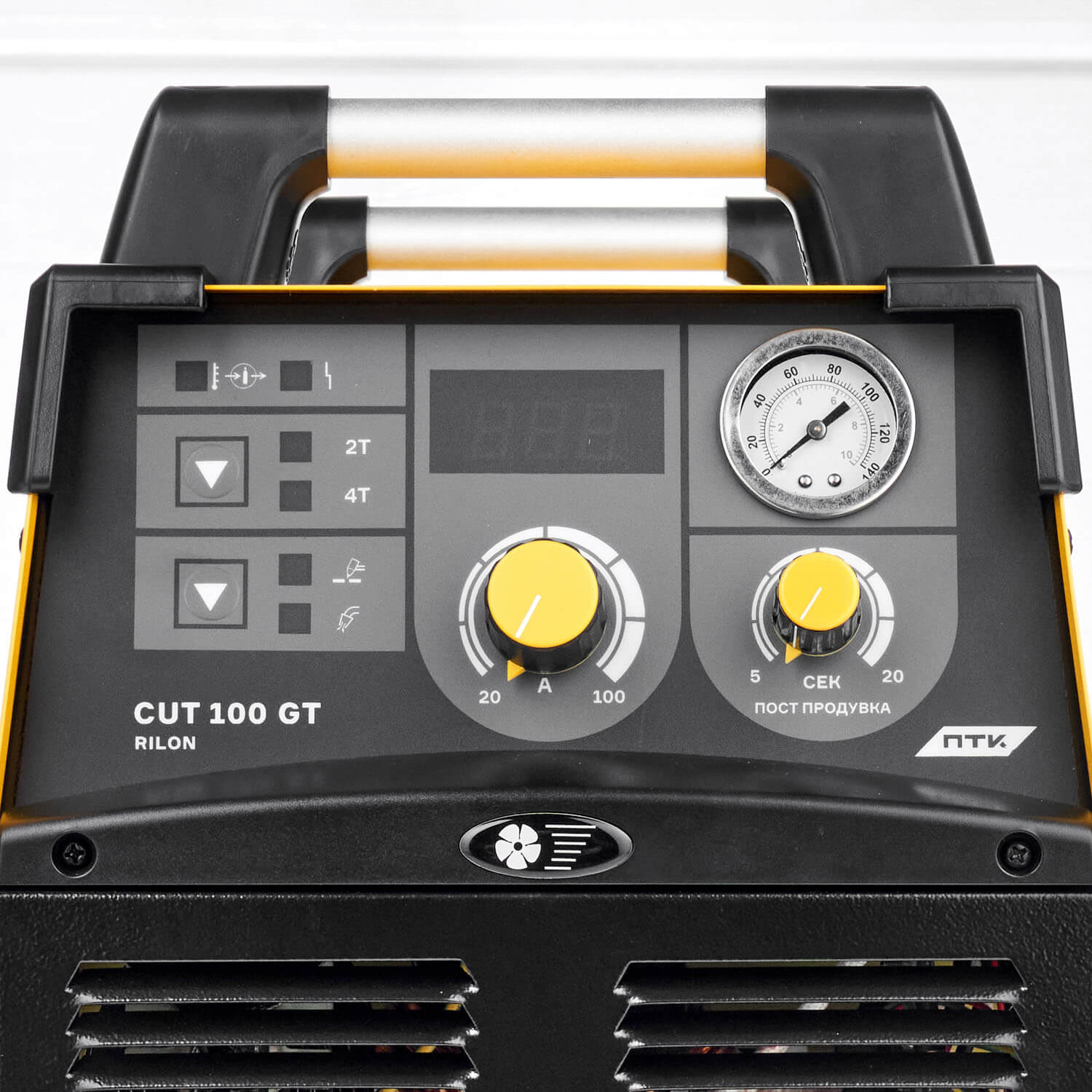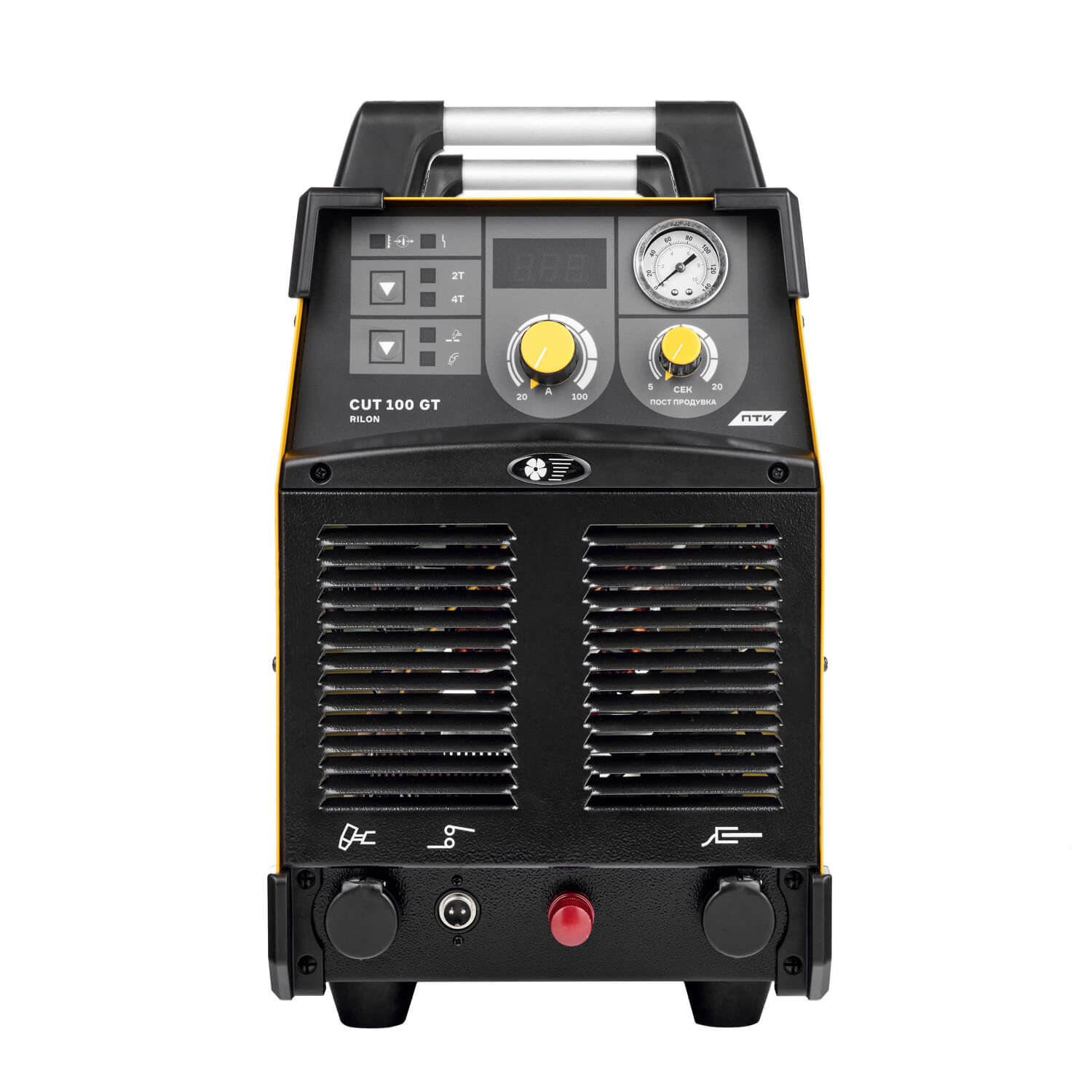 Особенности ПТК RILON CUT 100 GT:К аппарату необходимо подключать компрессор для подачи сжатого воздуха.Бесконтактный способ возбуждения дуги.Максимальная толщина разрезаемого металла 35 мм.Режимы 2Т/4Т.Постпродувка газа.Подключение к ЧПУ.Цифровая индикация отображения параметров, встроенный манометр и регулятор давления.Автоматическая защита от перегрева.Наличие индикатора перегрева плазмотрона.Полная комплектация для начала работы.Гарантия 5 лет на аппараты серии ПТК RILON.Комплектация:Аппарат воздушно-плазменной резки металлов – 1 шт.Плазменный резак 80 серии – 1 шт.Клемма заземления – 1 шт.Фильтр-регулятор – 1 шт.ЗИП и комплектующие – 1 наборРуководство по эксплуатации – 1 шт.