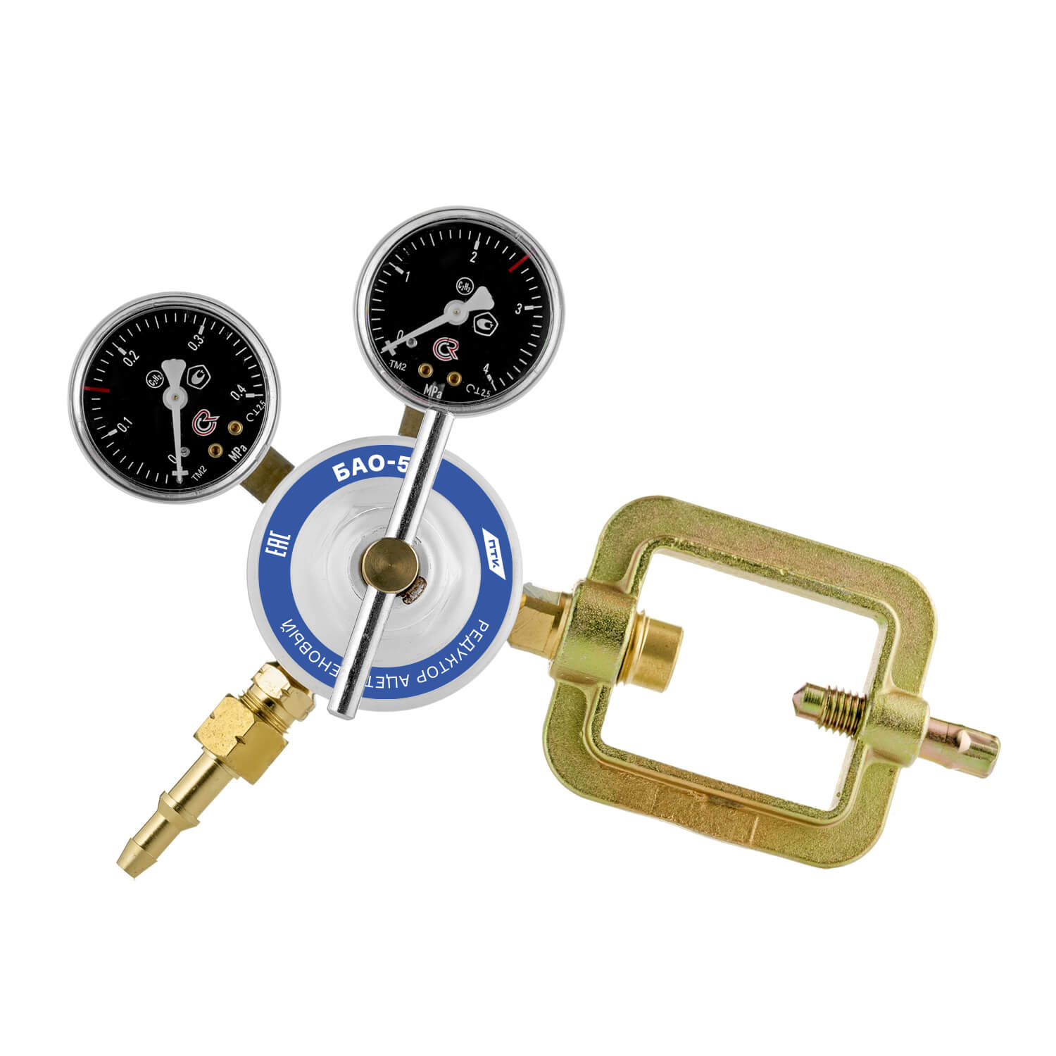 Редуктор ацетиленовый БАО-5-5 предназначен для понижения давления газа, поступающего из баллона, и автоматического поддержания постоянным заданного рабочего давления при газопламенной обработке. Производит тонкую настройку рабочего давления.