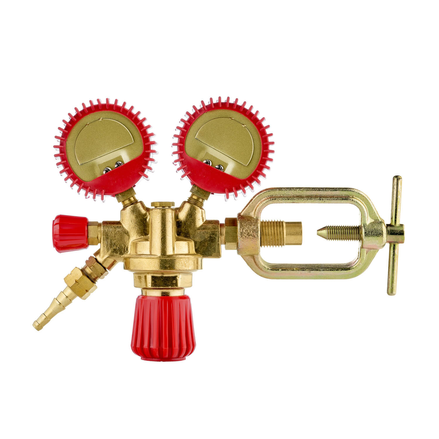 Редуктор с литым латунным корпусом. На редуктор установлены эргономичные задающие винты. Манометры дополнительно защищены резиновыми кожухами, которые предохраняют устройство от механических повреждений.