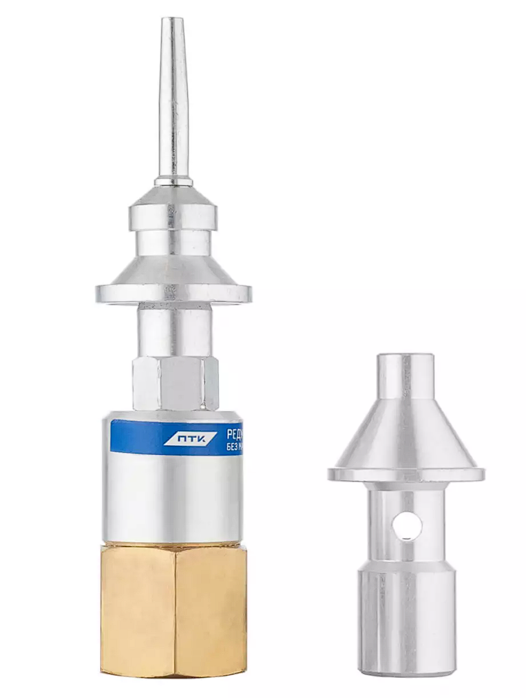 На выходе редуктора установлен пусковой клапан с насадком (наконечником) для подачи газа в шар. Клапан открывается при осевом нажатии на насадок. После наполнения и снятия воздушного шара с насадка, клапан автоматически закрывается.