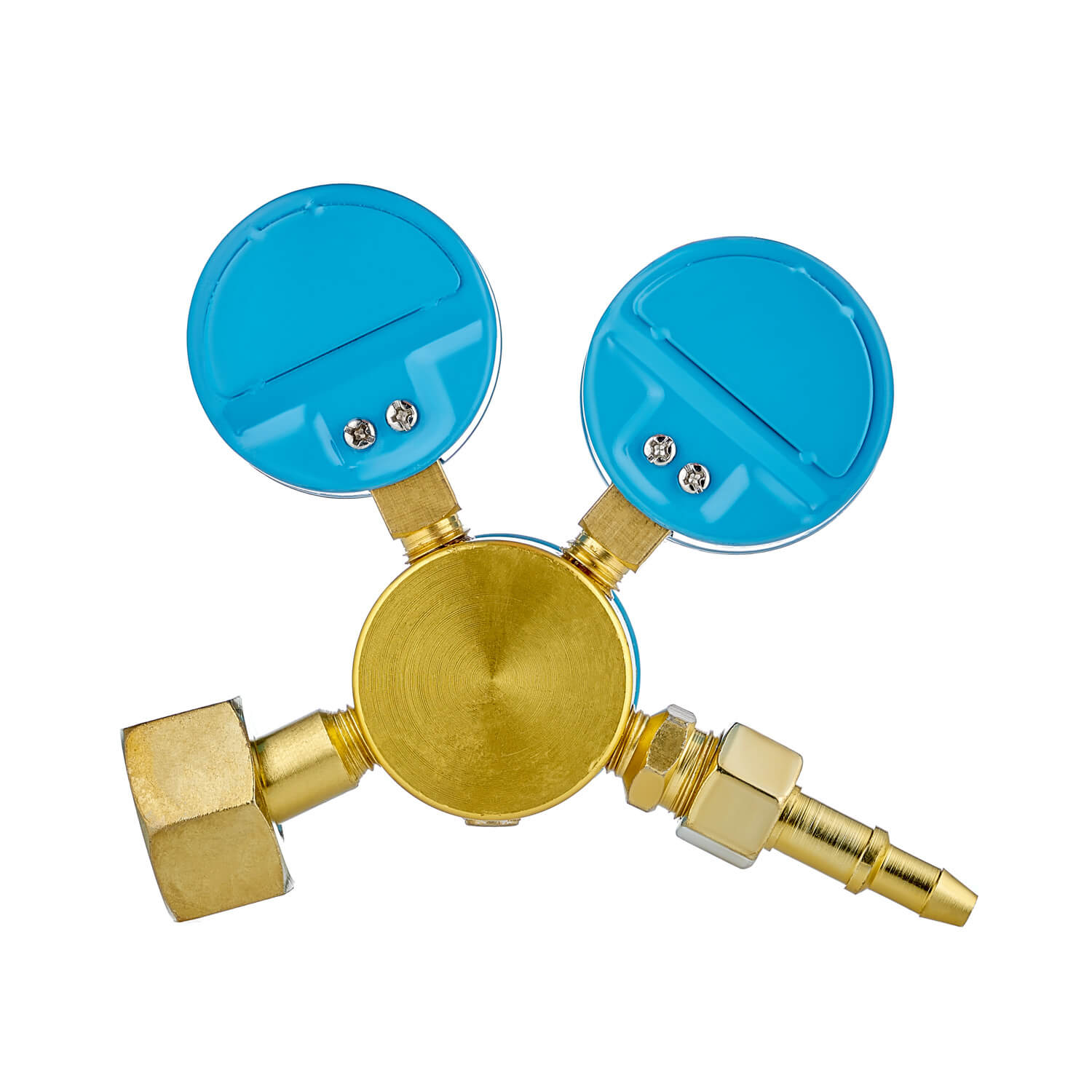 Редуктор с радиальным подключением. Корпус редуктора изготовлен из алюминия. Крышка редуктора изготовлена из специального пластика, который обладает высокой прочностью, устойчив к воздействию агрессивных сред и высоким температурам. Благодаря этому редуктор обладает компактной формой и облегченной конструкцией. Товар подойдет для передвижных газосварочных постов и для эксплуатации на небольших предприятиях с низкочастотным использованием устройства.