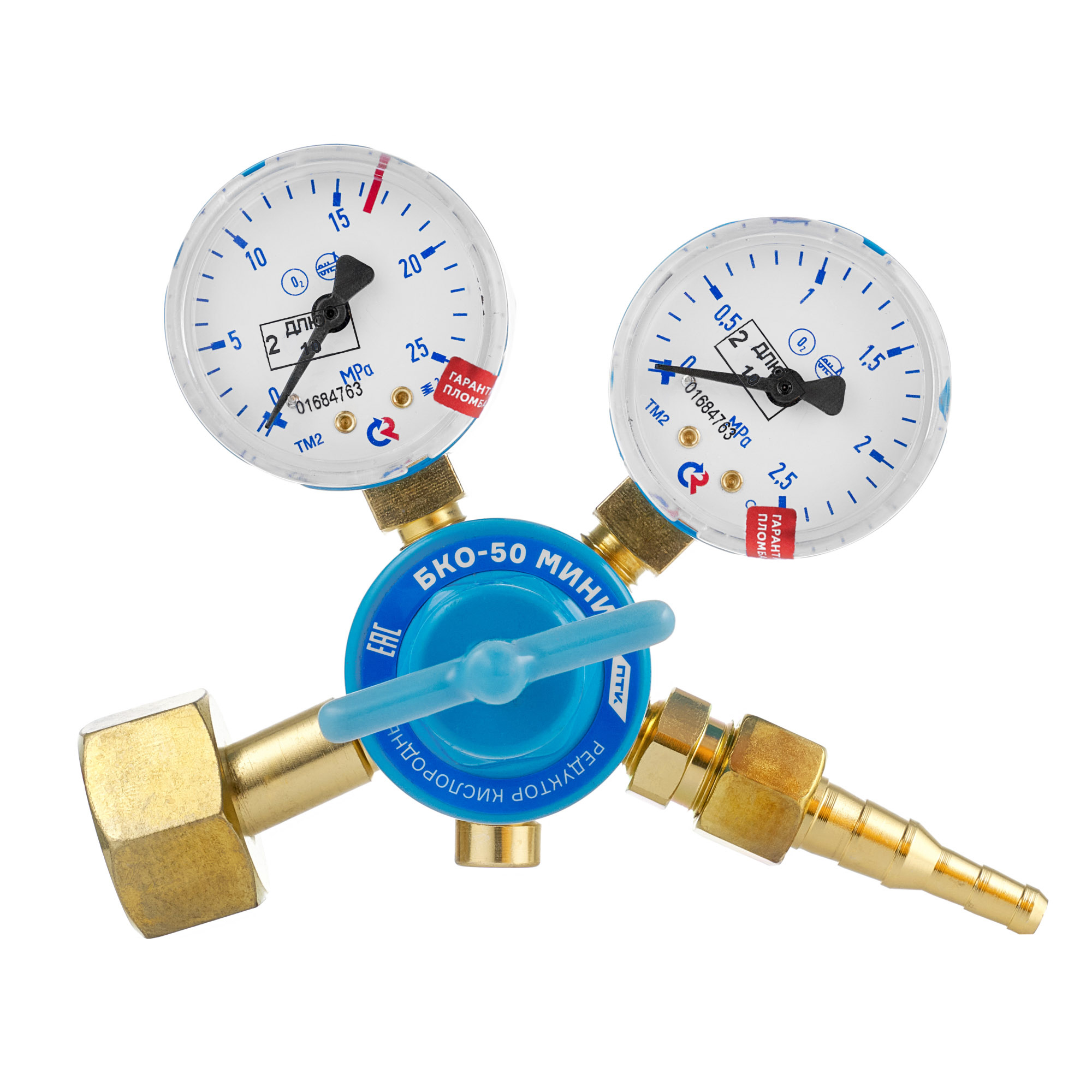 Редуктор кислородный БКО-50 МИНИ с поверенными манометрами предназначен для понижения давления газа, поступающего из баллона, и автоматического поддержания постоянным заданного рабочего давления при газопламенной обработке. Производит тонкую настройку рабочего давления, особенно на малых величинах. Срабатывание предохранительного клапана происходит при давлении в 1,6 МПа.