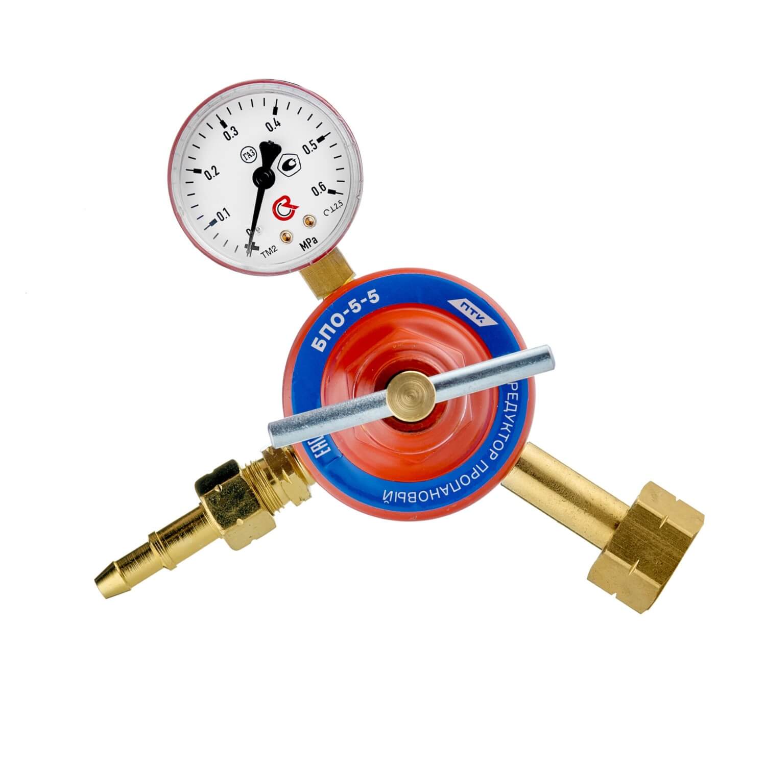 Редуктор пропановый БПО-5-5 предназначен для понижения давления газа, поступающего из баллона, и автоматического поддержания постоянным заданного рабочего давления при газопламенной обработке. Производит тонкую настройку рабочего давления.