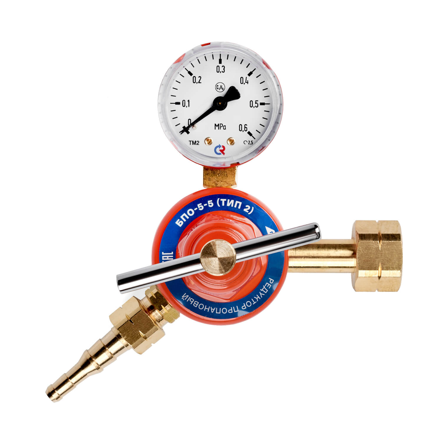 Пропановый редуктор БПО-5-5 (тип 2) предназначен для понижения давления газа, поступающего из баллона, и автоматического поддержания постоянным заданного рабочего давления при газопламенной обработке. Производит тонкую настройку рабочего давления.