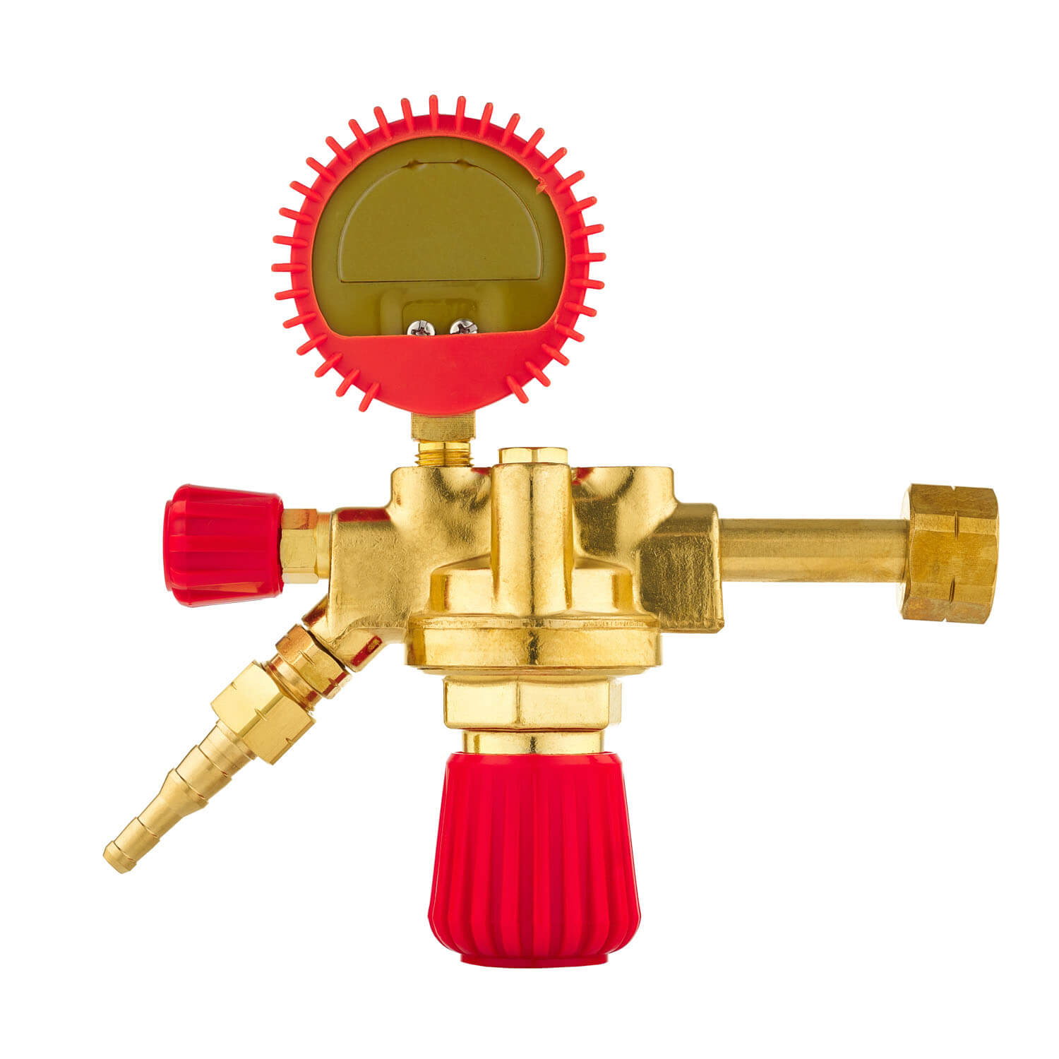 Редуктор с литым латунным корпусом. На редуктор установлены эргономичные задающие винты. Корпус манометра укомплектован защитным бампером, который предохраняет устройство от механических повреждений. Редуктор применяется при интенсивной эксплуатации, также при эксплуатации на открытом воздухе в зимний период времени.