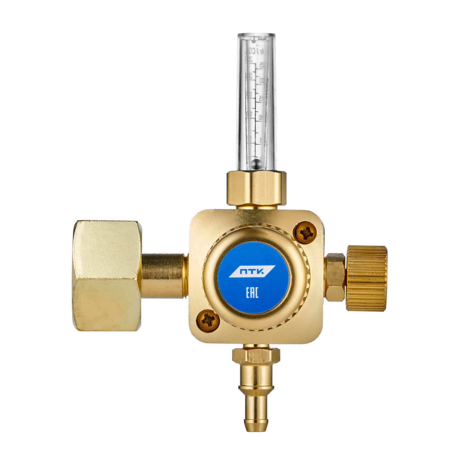 Колба ротаметра изготовлена из прочного пластика, которая имеет две шкалы Ar/CO2. На регулятор установлен эргономичный винт из металлопластика.