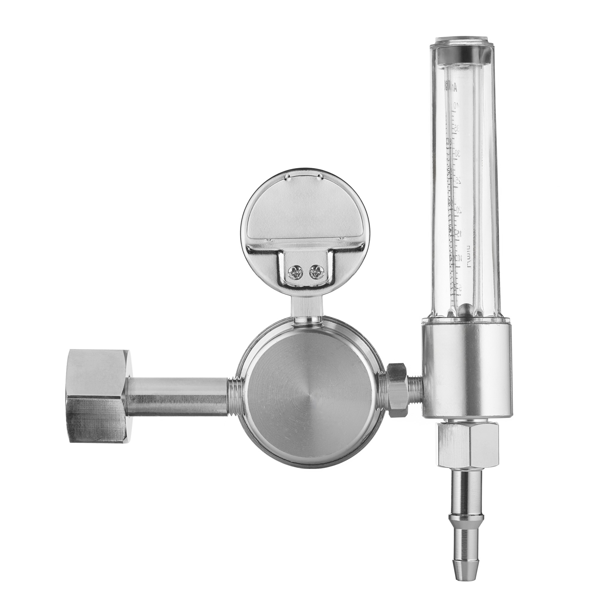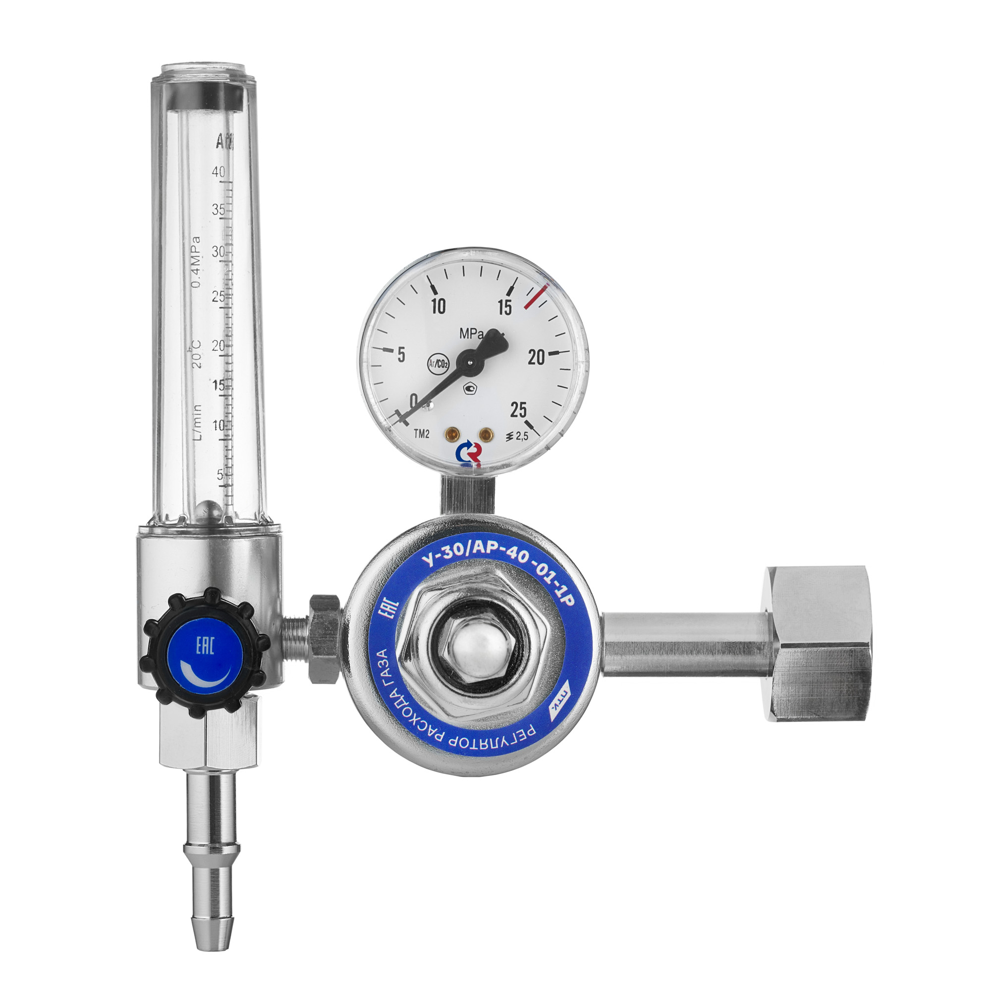 Корпус регулятора изготовлен из алюминия (литье под давлением). Колба ротаметра изготовлена из прочного пластика, которая имеет две шкалы Ar/CO2.