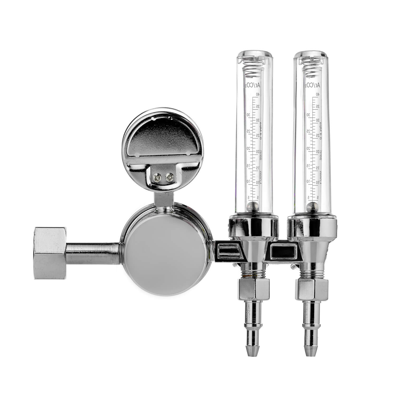 Корпус регулятора изготовлен из алюминия (литье под давлением). Корпус спаренных ротаметров изготовлен из силумина - сплав алюминия с кремнием. Колбы ротаметров изготовлены из прочного пластика, которые имеют две шкалы Ar/CO2.