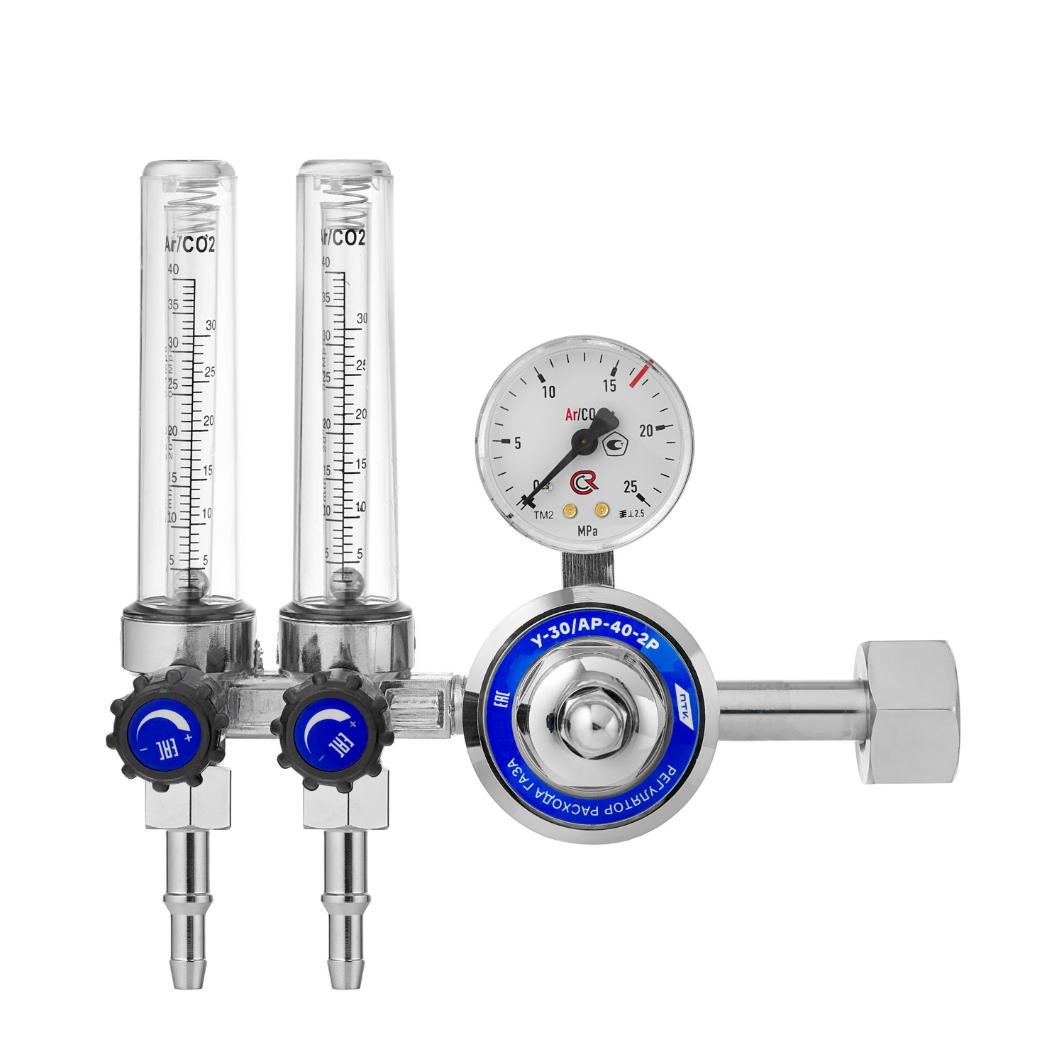 Регулятор расхода газа У-30/АР-40-2Р предназначен для понижения газа и автоматического поддержания постоянным заданного расхода при питании постов и установок в среде защитных газов. Регулятор обеспечивает тонкую настройку и стабильное поддержание заданного рабочего давления (расхода).