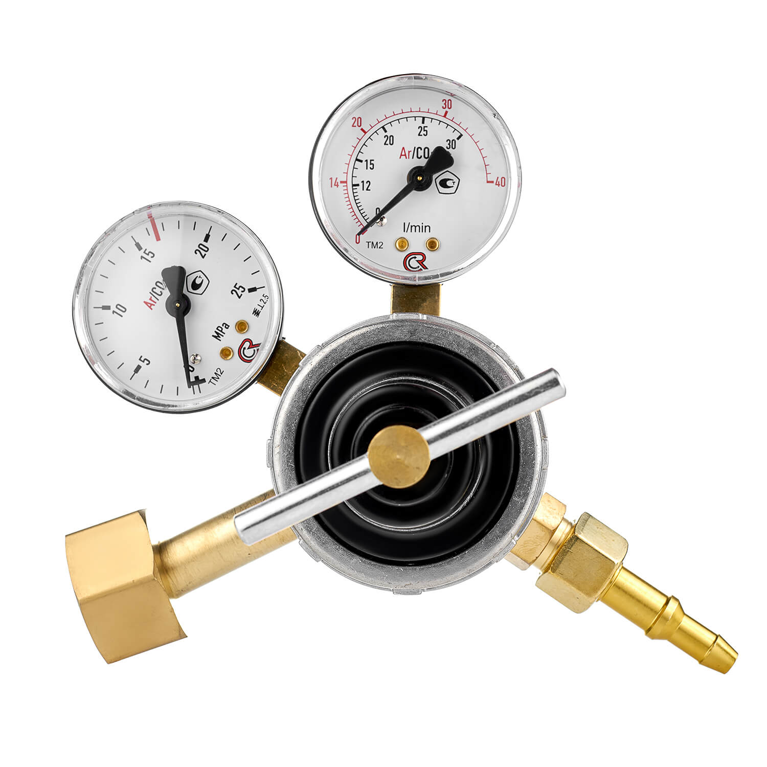 Красная шкала — расход в л/мин для Аргона (Ar).Черная шкала — расход в л/мин для Углекислоты (CO2).Корпус регулятора изготовлен из латуни. Регулятор можно использовать в цеховом производстве интенсивной эксплуатации и на открытом воздухе.