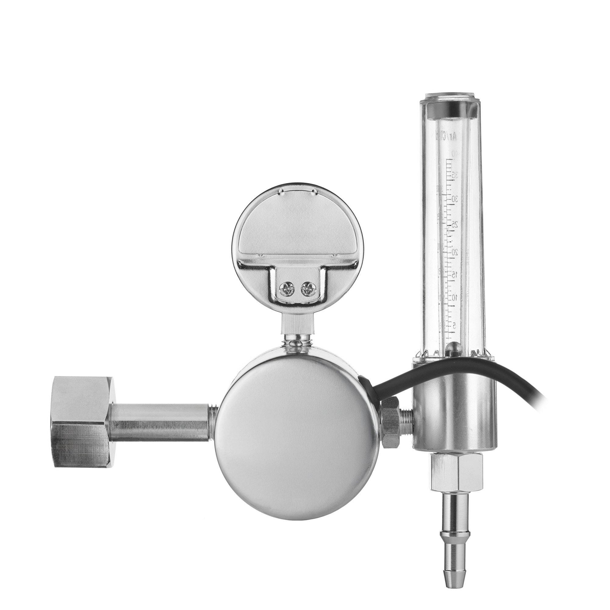 В корпус регулятора встроен подогреватель на 220В. Электроподогреватель обеспечивает работоспособность регулятора при низких температурах окружающей среды (до -30°С). Корпус регулятора изготовлен из алюминия (литье под давлением). Колба ротаметра изготовлена из прочного пластика, которая имеет две шкалы Ar/CO2.