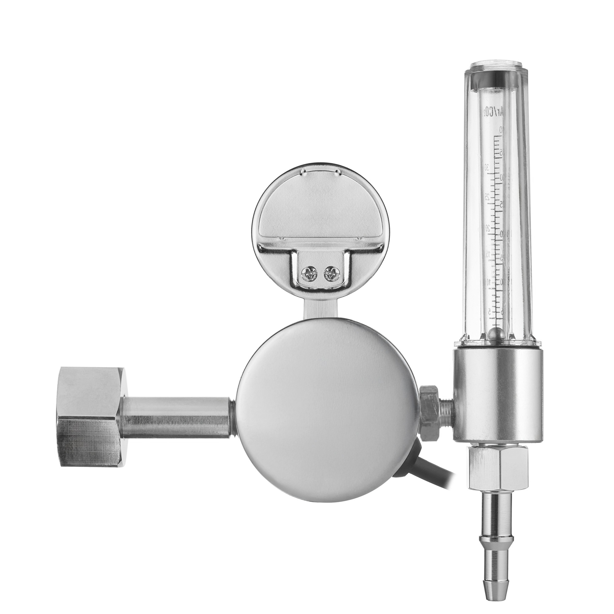 В корпус регулятора встроен подогреватель на 36В. Электроподогреватель обеспечивает работоспособность регулятора при низких температурах окружающей среды (до -30°С). Корпус регулятора изготовлен из латуни, никелированное покрытие. Колба ротаметра изготовлена из прочного пластика, которая имеет две шкалы Ar/CO2.