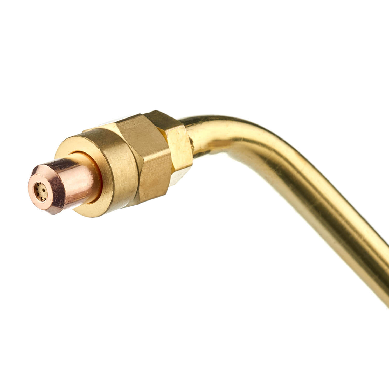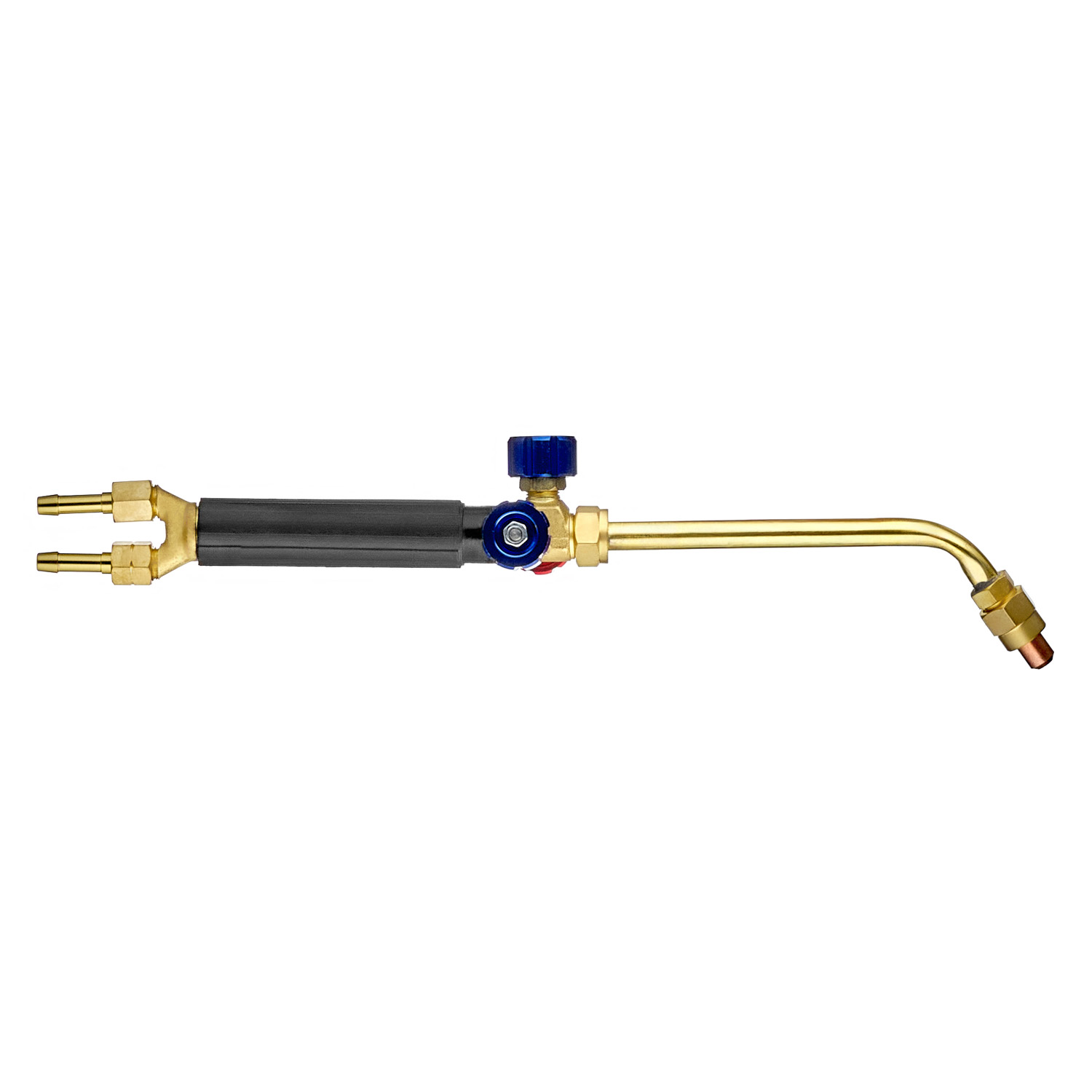 Вентильный резак малых габаритов, который при замене комплектующих (сварочного наконечника) можно переделать в сварочную горелку. Это позволит сваривать металлы толщиной до 3 мм.Угол наклона головки резака составляет 110°, это поможет производить работы в труднодоступных местах. Резак укомплектован ниппелями, что позволяет использовать резинотканевые рукава с внутренним диаметром 6 мм без дополнительных переходников, накидными гайками M12х1,25 для подачи кислорода и M12х1,25LH для подачи пропана.Товар поставляется в индивидуальной упаковке, что исключает бой и обеспечивает сохранность комплектации во время транспортировки и хранения на складе.Для защиты от противотока газа, а также от обратного удара пламени рекомендуется устанавливать клапана КОК (кислород) и КОГ (горючий газ) на входные штуцеры резака.Комплектация: