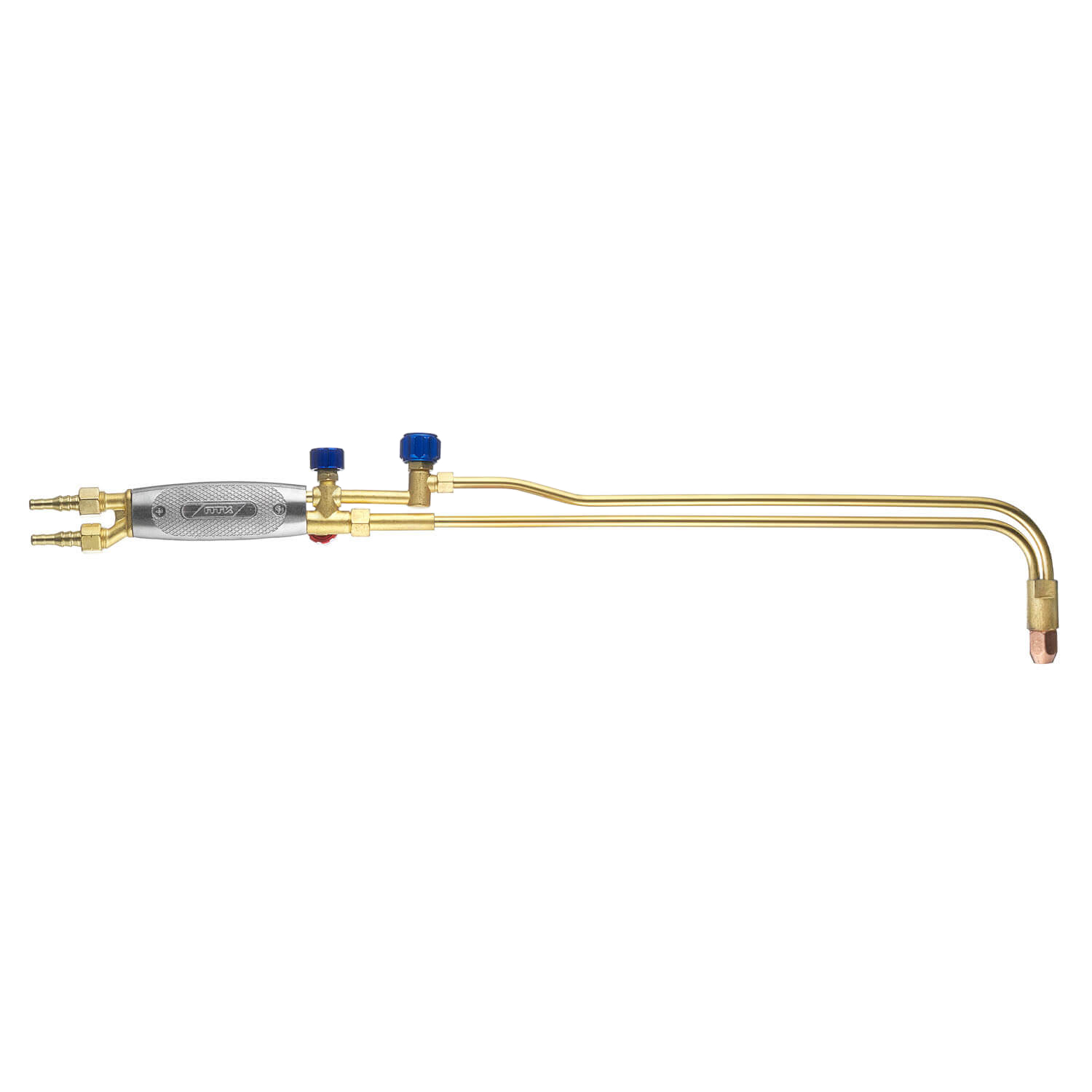 Резак имеет удлиненную конструкцию, длина составляет 750 мм.Резак укомплектован ниппелями, что позволяет использовать резинотканевые рукава с внутренним диаметром 6 и 9 мм без дополнительных переходников, накидными гайками M16х1,5 для подачи кислорода и M16х1,5LH для подачи пропана.Товар поставляется в индивидуальной упаковке, что исключает бой и обеспечивает сохранность комплектации во время транспортировки и хранения на складе.Для защиты от противотока газа, а также от обратного удара пламени рекомендуется устанавливать клапана КОК (кислород) и КОГ (горючий газ) на входные штуцеры резака.Комплектация: