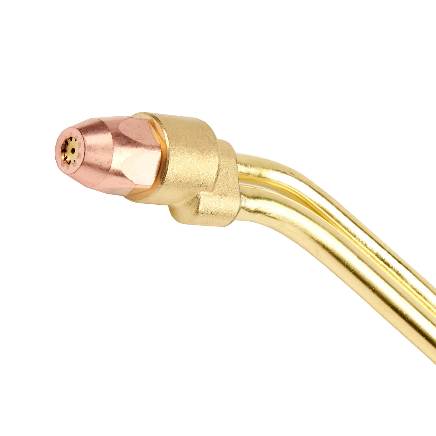 Резак имеет удлиненную конструкцию, длина равна 800 мм. Угол наклона головки резака равен 150°. Такие конструктивные особенности позволят производить рез металла в труднодоступных местах.Резак укомплектован ниппелями, что позволяет использовать резинотканевые рукава с внутренним диаметром 6 и 9 мм без дополнительных переходников, накидными гайками M16х1,5 для подачи кислорода и M16х1,5LH для подачи пропана.Товар поставляется в индивидуальной упаковке, что исключает бой и обеспечивает сохранность комплектации во время транспортировки и хранения на складе.Для защиты от противотока газа, а также от обратного удара пламени рекомендуется устанавливать клапана КОК (кислород) и КОГ (горючий газ) на входные штуцеры резака.Комплектация: