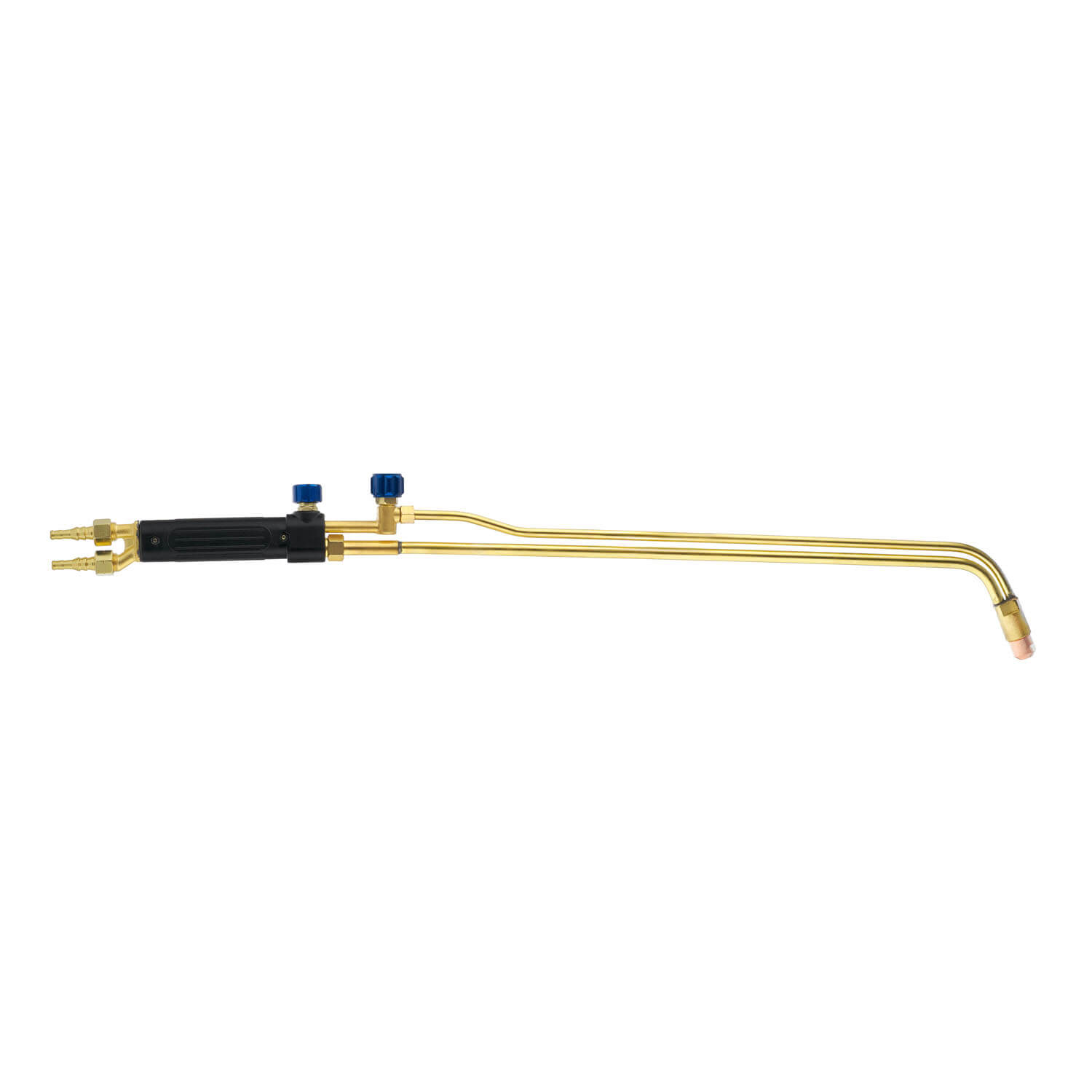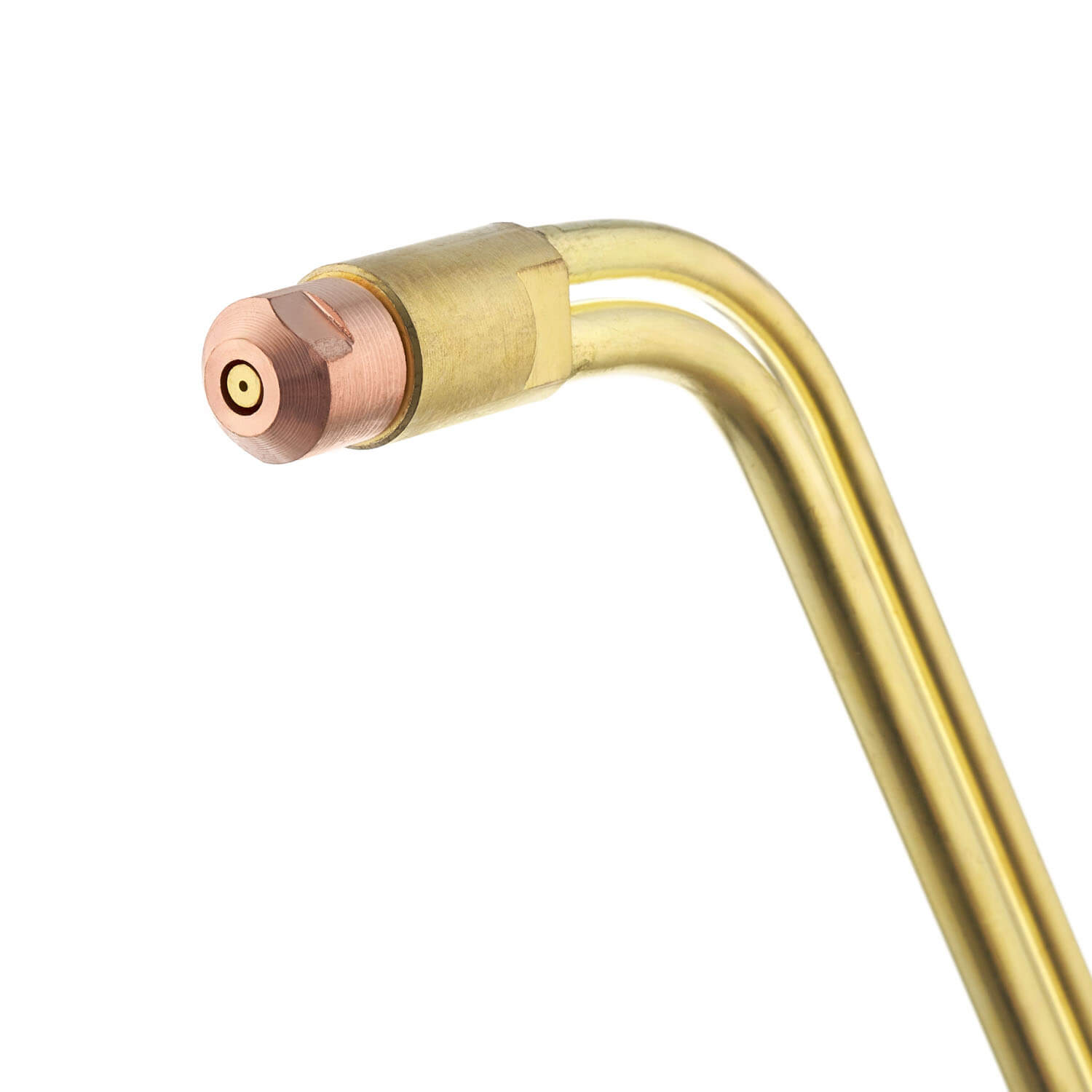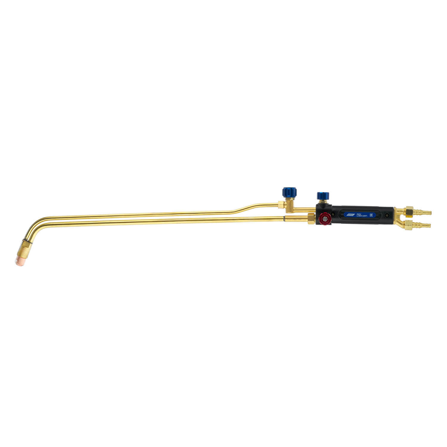 Угол наклона головки резака в 135° и удлиненная конструкция резака помогут производить работы в труднодоступных местах.Резак укомплектован ниппелями, что позволяет использовать резинотканевые рукава с внутренним диаметром 6 и 9 мм без дополнительных переходников, накидными гайками M16х1,5 для подачи кислорода и M16х1,5LH для подачи пропана.Товар поставляется в индивидуальной упаковке, что исключает бой и обеспечивает сохранность комплектации во время транспортировки и хранения на складе.Для защиты от противотока газа, а также от обратного удара пламени рекомендуется устанавливать клапана КОК (кислород) и КОГ (горючий газ) на входные штуцеры резака.Комплектация: