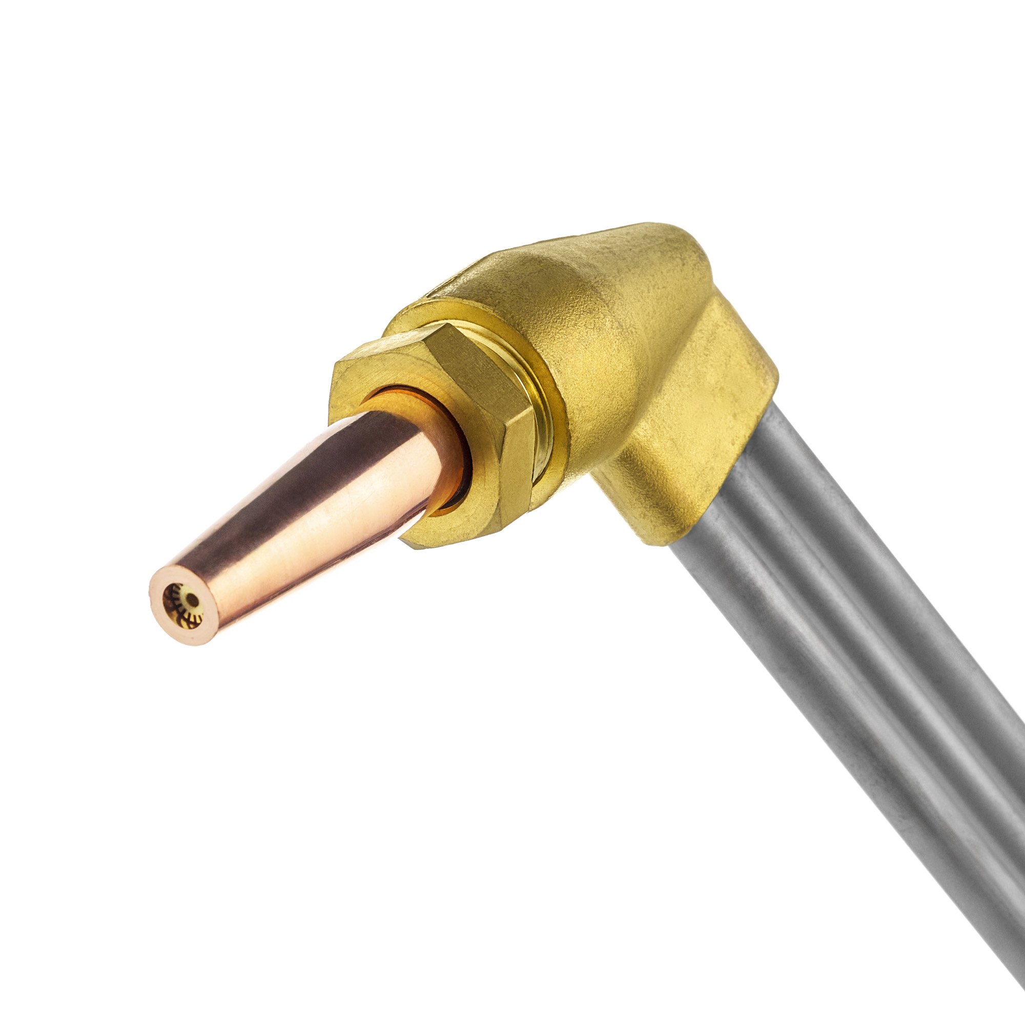Угол наклона головки резака в 110° и удлиненная конструкция резака помогут производить работы в труднодоступных местах.Резак не требует установки огнепреградительных клапанов.Резак укомплектован ниппелями, что позволяет использовать резинотканевые рукава с внутренним диаметром 6 и 9 мм без дополнительных переходников, накидными гайками M16х1,5 для подачи кислорода и M16х1,5LH для подачи горючего газа.Товар поставляется в индивидуальной упаковке, что исключает бой и обеспечивает сохранность комплектации во время транспортировки и хранения на складе.Комплектация: