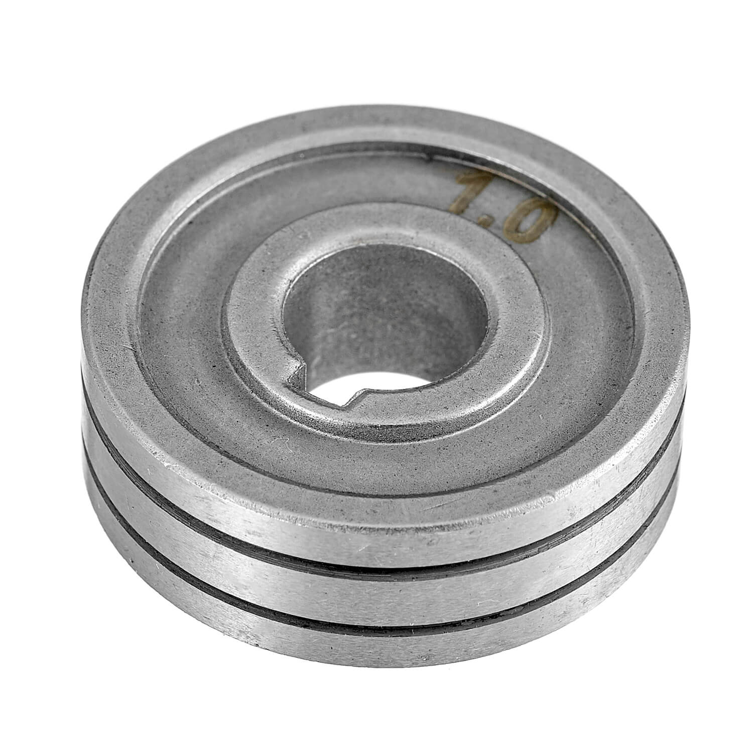 Это сменный элемент подающего механизма, который подбирается в соответствии с видом сварочной проволоки и ее диаметром. Данные ролики предназначены для работы со стальной проволокой диаметром 0,8–1,0 мм. Размер роликов 30х10х10 мм. Подающие ролики имеют две направляющие канавки V-образной формы. При изменении сечения проволоки необходимо перевернуть ролик нужной стороной и использовать его далее.
