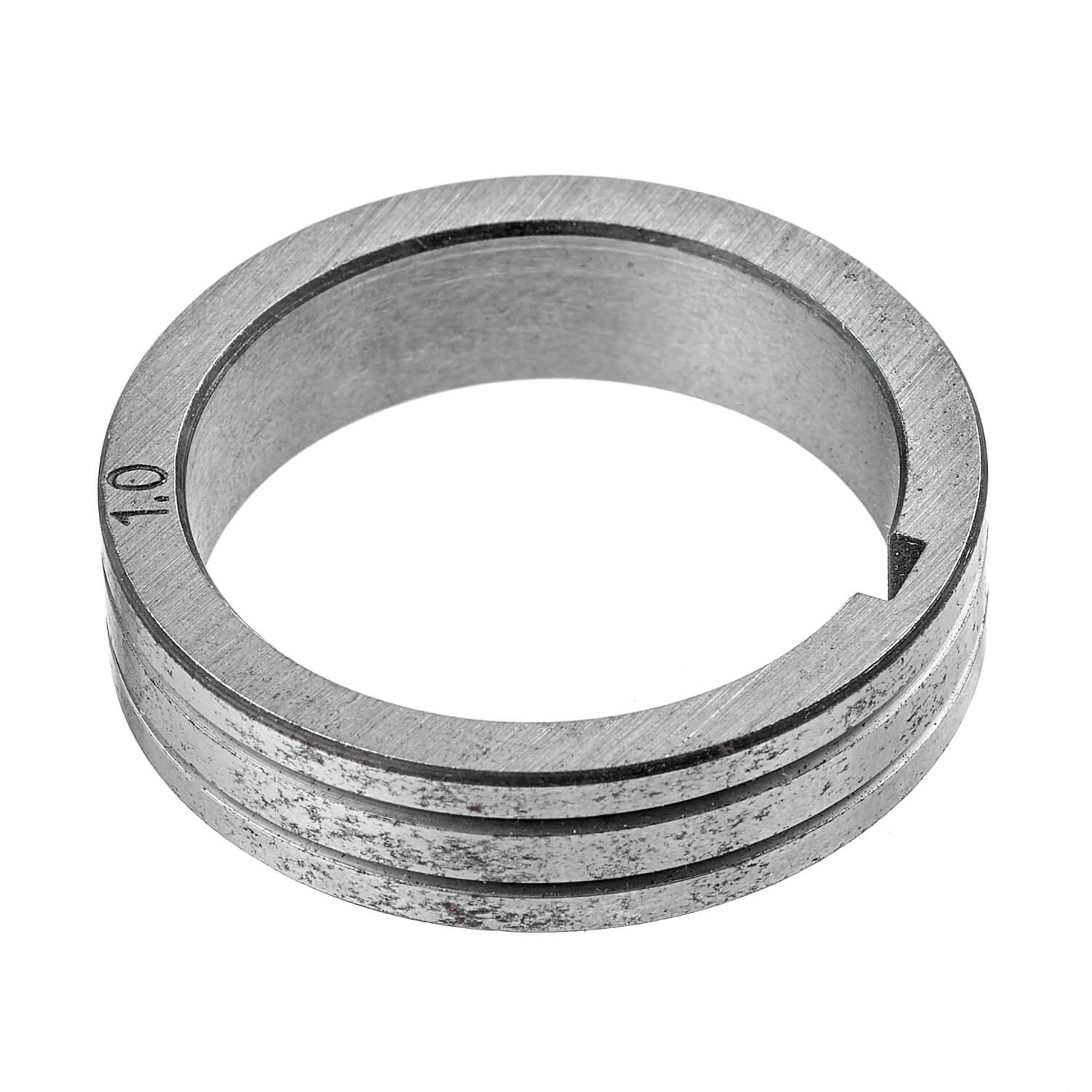 Это сменный элемент подающего механизма, который подбирается в соответствии с видом сварочной проволоки и ее диаметром. Данные ролики предназначены для работы со стальной проволокой диаметром 0,8–1,0 мм. Размер роликов 40х32х10 мм. Подающие ролики имеют две направляющие канавки V-образной формы. При изменении сечения проволоки необходимо перевернуть ролик нужной стороной и использовать его далее.