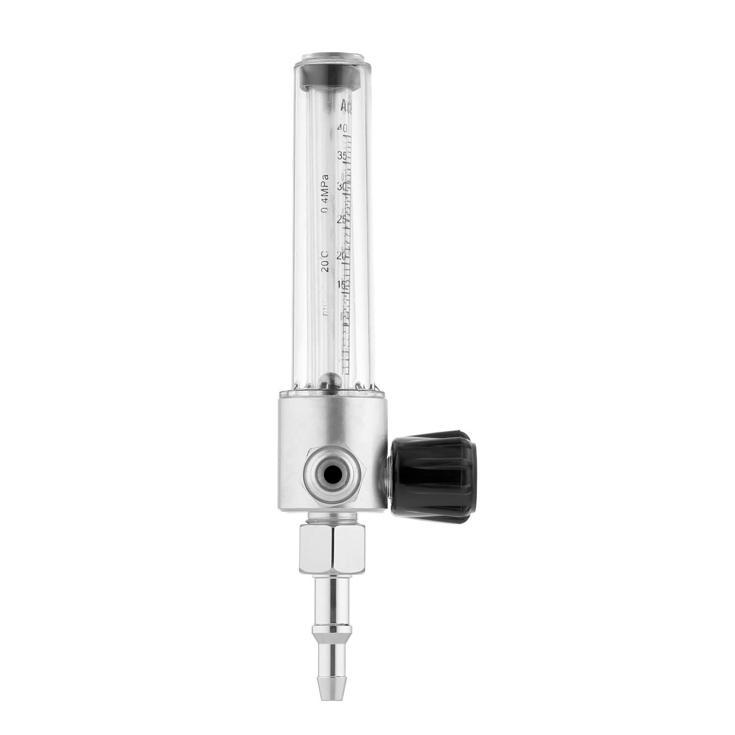 Корпус ротаметра изготовлен из силумина, а колба ротаметра из прочного пластика. Внутри наружной пластиковой колбы, расположена малая пластиковая колба для шарика-поплавка. На ней нанесена двойная шкала расхода газов Ar/CO2, которая показывает расход каждого из них (л/мин).