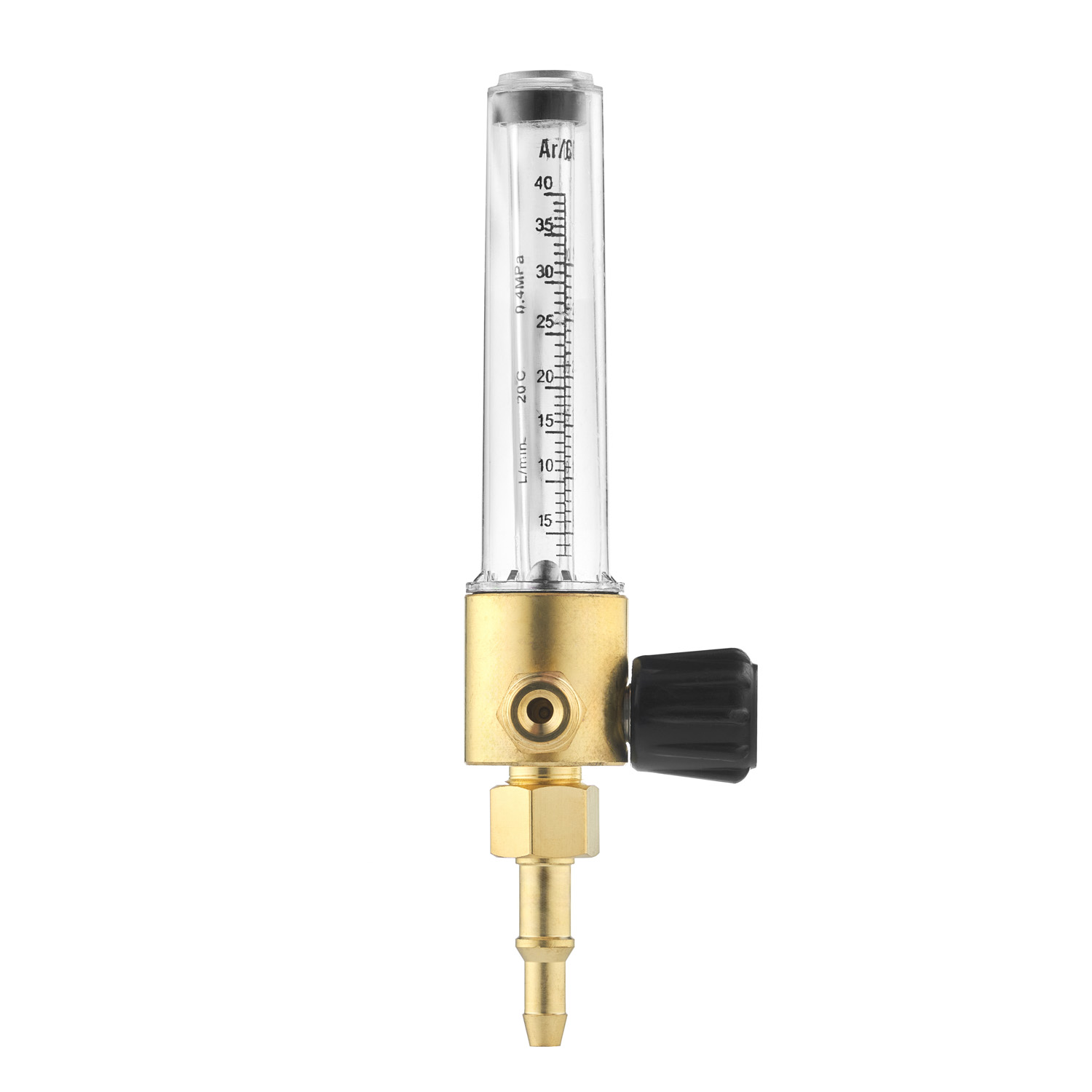 Корпус ротаметра изготовлен из латуни, колба ротаметра из прочного пластика. Внутри наружной пластиковой колбы, расположена малая пластиковая колба для шарика-поплавка. На ней нанесена двойная шкала расхода газов Ar/CO2, которая показывает расход каждого из них (л/мин).