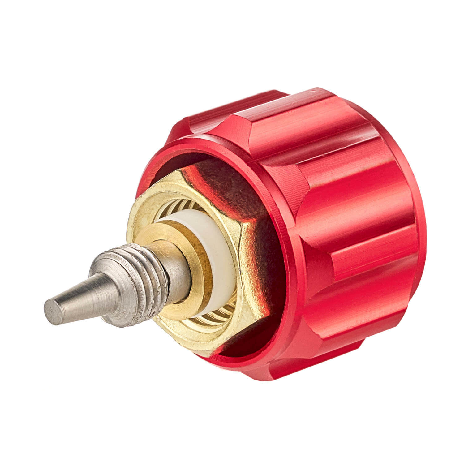 Вентиль ГГ изготовлен из латуни. Красный барашек изготовлен из алюминия и имеет гравировку на торцевой части с информацией о направлении закрытия (буква «З») и открытия (буква «О») вентиля.