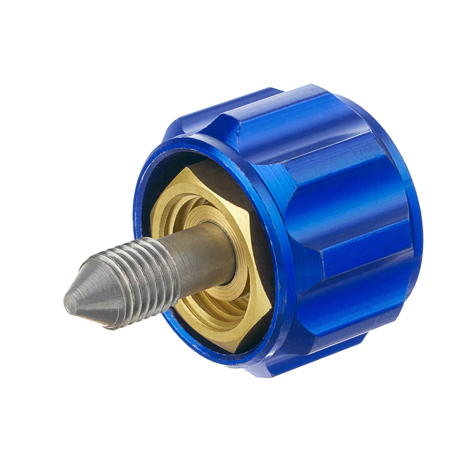 Вентиль КП изготовлен из латуни. Синий барашек изготовлен из алюминия и имеет гравировку на торцевой части с информацией о направлении закрытия (буква «З») и открытия (буква «О») вентиля.