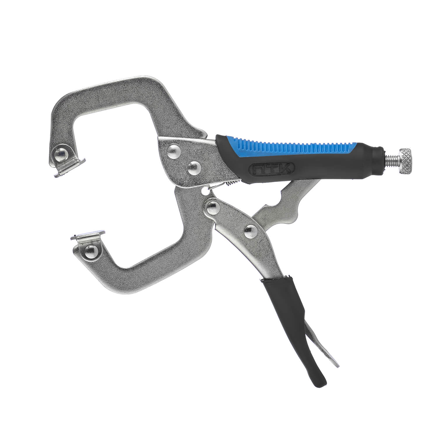 Зажим изготовлен из стали и имеет прочную конструкцию с высокой степенью твердости, что обеспечивает надежность и увеличивает срок эксплуатации изделия при сварке.