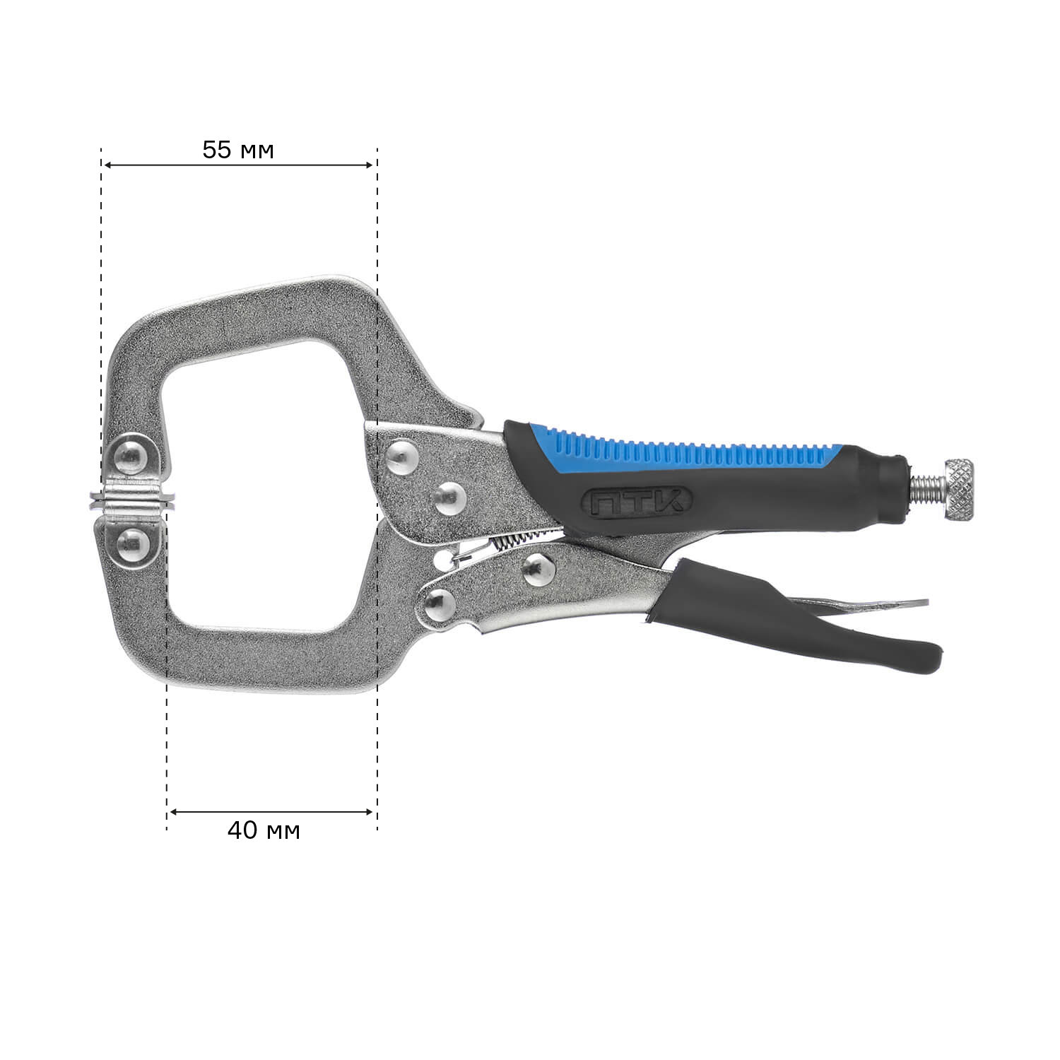 Зажим с подвижными губками и винтом, который расположен на рукоятке и обеспечивает надежную фиксацию. Максимальный размер закрепляемой детали 40 мм. Глубина зажима 55/40 мм.